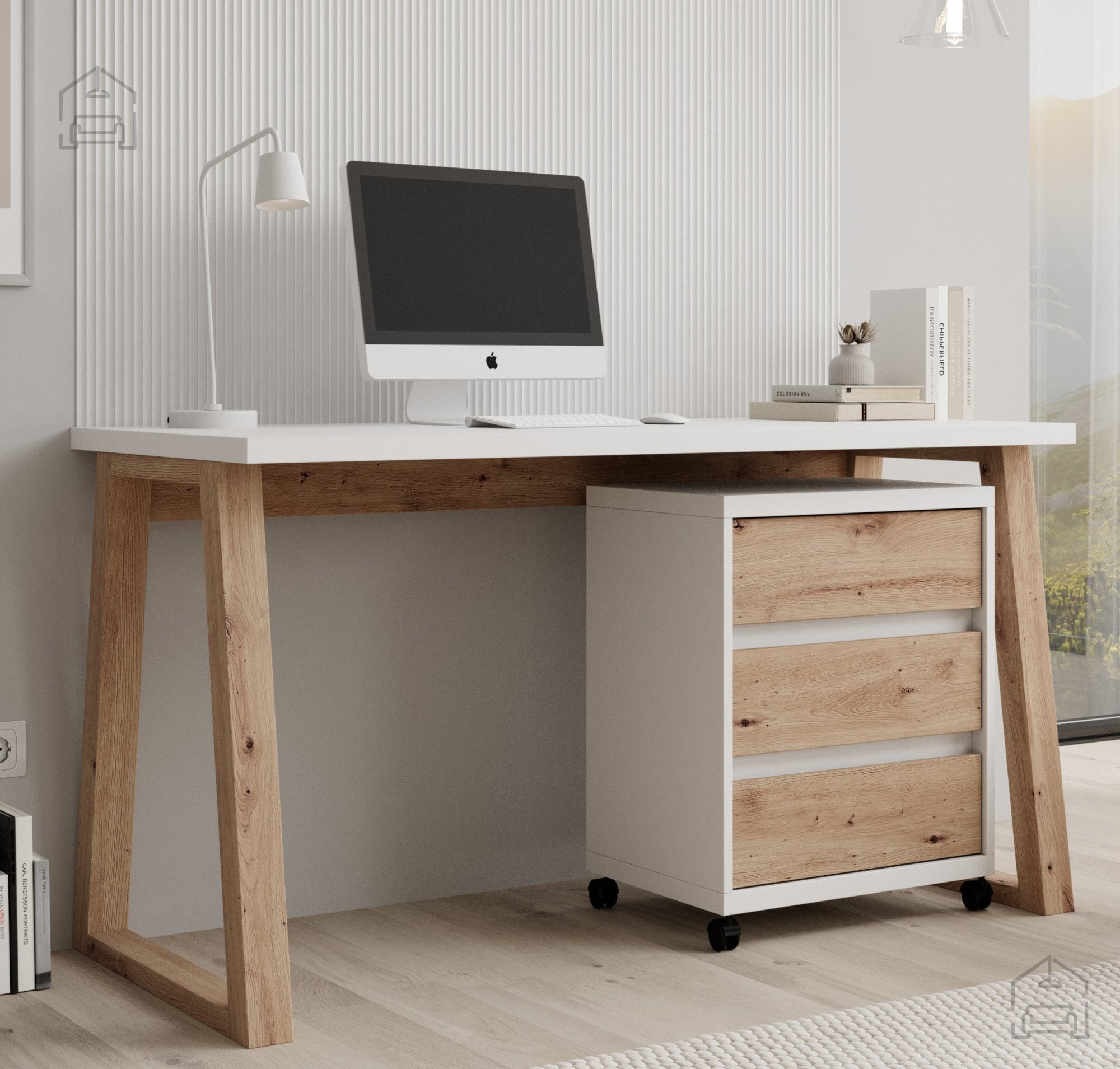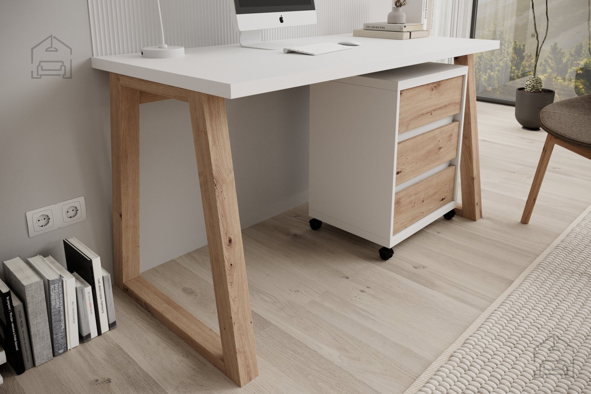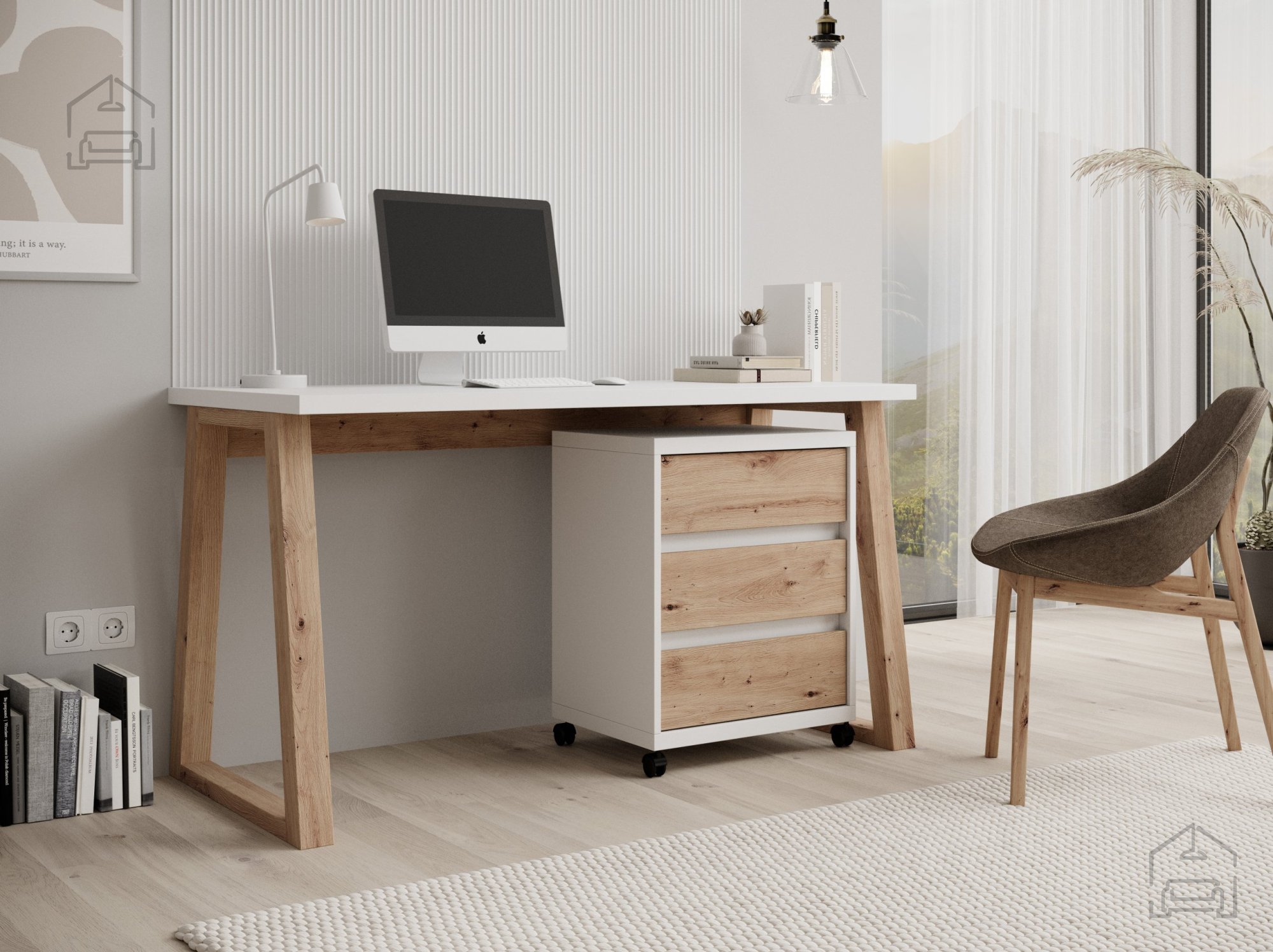 Vsak dom ali pisarna potrebuje kotiček, kjer se lahko v miru posvetimo delu, učenju ali ustvarjanju. Pisalna miza z mobilno omarico Iwo I v kombinaciji bela/hrast artisan je popolna izbira za vse, ki želijo združiti brezčasno estetiko, praktičnost in kakovost. Njen sodoben dizajn z naravno toplino lesenega vzorca hrasta artisan vnaša prijeten občutek domačnosti, medtem ko čista bela barva poskrbi za svež in urejen videz prostora.