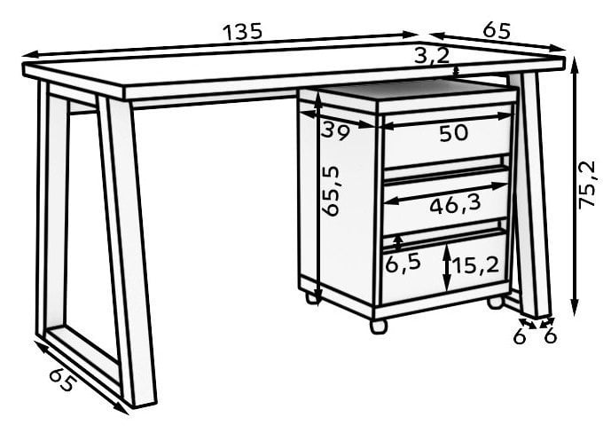 Z dimenzijami 135x65x75,2 cm ta miza nudi dovolj delovne površine za računalnik, dokumente in vse potrebščine, ki jih potrebujete pri delu ali študiju. Prav zaradi premišljenih mer se popolnoma prilega tako večjim pisarnam kot tudi manjšim stanovanjskim prostorom, kjer je pomembno, da vsak centimeter šteje.