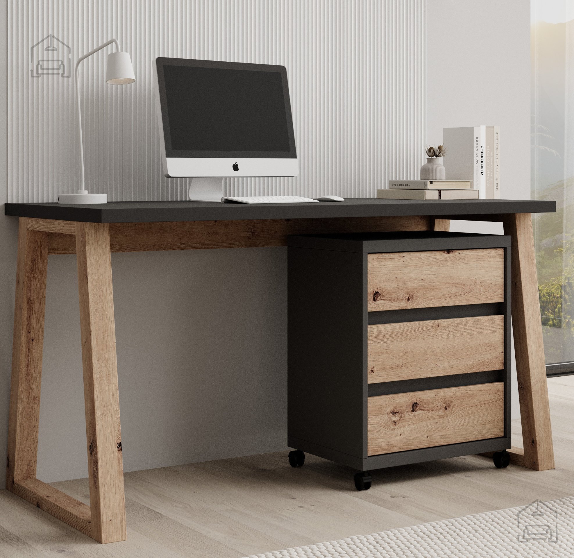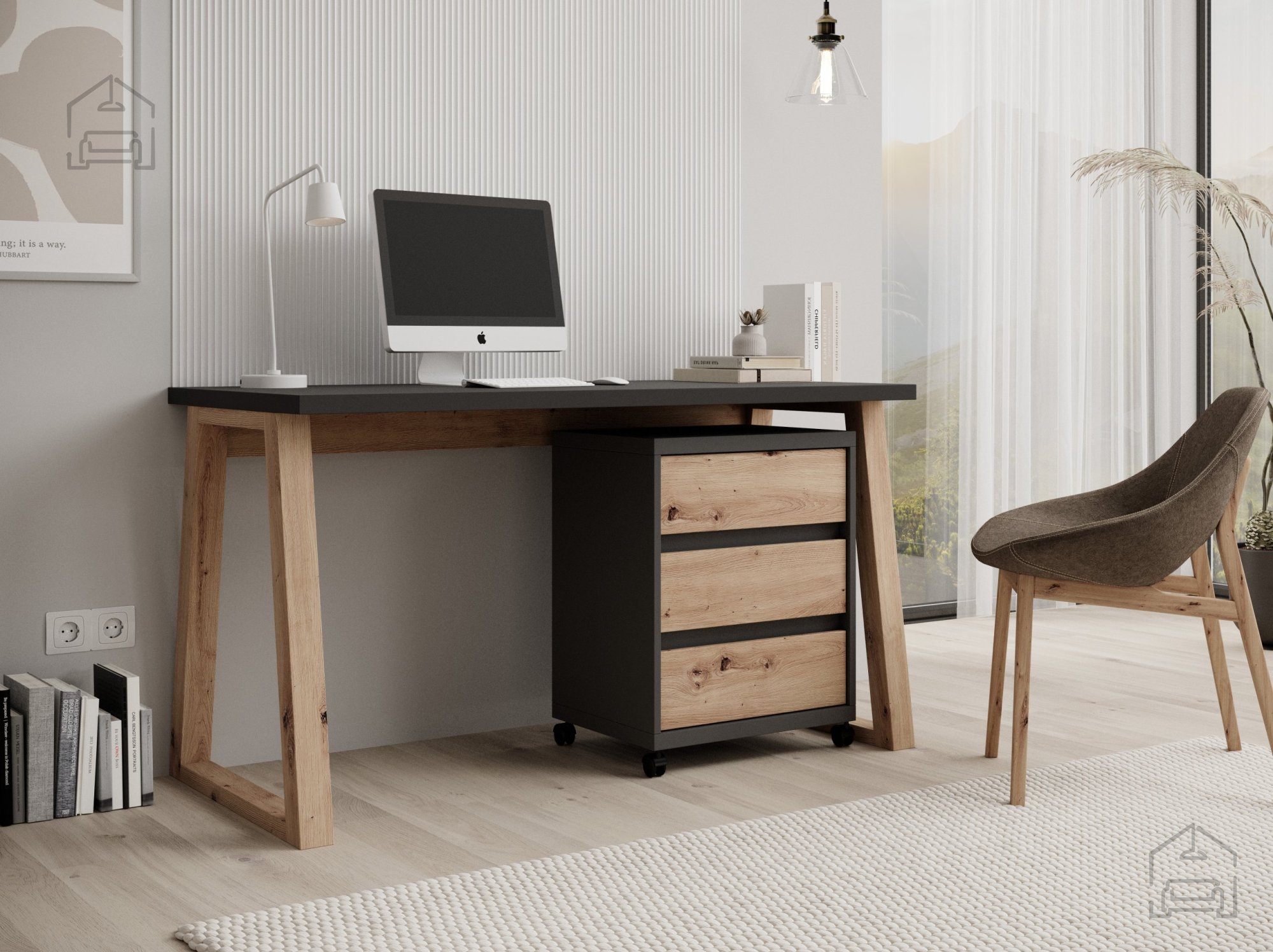 Pisalna miza z mobilno omarico Iwo I v kombinaciji barv grafit in hrast artisan združuje sodoben dizajn, trpežno konstrukcijo in izjemno praktičnost. Ustvarjena je za tiste, ki želijo svoj delovni kotiček spremeniti v prostor navdiha, produktivnosti in udobja. S svojimi dimenzijami 135x65x75,2 cm ponuja dovolj prostora za računalnik, dokumente in vse potrebščine, ki jih potrebujete pri vsakodnevnem delu ali učenju.
