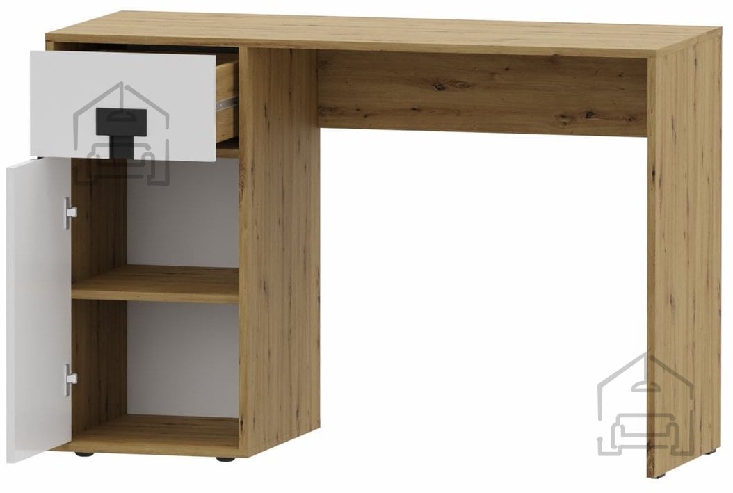 Pisalna miza Index 10 – bela sijaj/artisan hrast združuje funkcionalnost, estetiko in vzdržljivost. Njena kompaktna oblika omogoča optimalno izkoriščenost prostora, medtem ko barvni kontrasti vnesejo eleganco in toplino. Zaradi preprostega, a sodobnega dizajna se lepo ujema z različnimi vrstami notranje opreme – od minimalističnih do rustikalnih ambientov. Je odlična izbira za vse, ki iščejo kakovostno, praktično in vizualno privlačno rešitev za svoj delovni ali študijski kotiček.