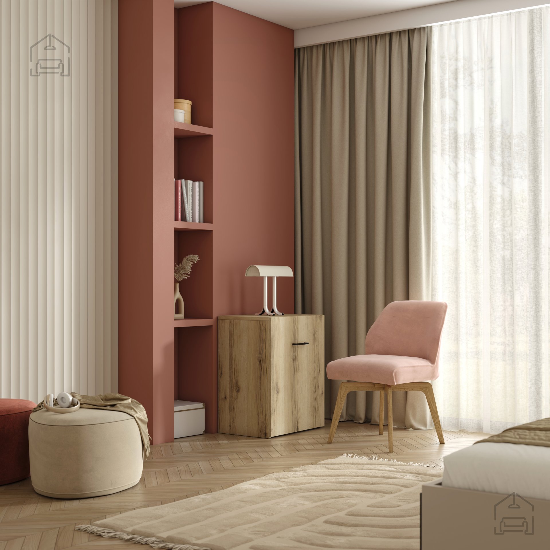 Miza Smart je premišljeno zasnovana, da omogoča optimalno organizacijo delovnega prostora. Na levi strani se nahaja priročen predalčnik za shranjevanje dokumentov in pisarniških pripomočkov, ki jih želite imeti vedno pri roki. Na desni strani so odprte police in vrata, ki nudijo dodaten prostor za knjige, fascikle ali druge predmete, ki jih želite imeti urejeno pospravljene. Takšna razporeditev omogoča preglednost in red, kar pripomore k večji produktivnosti in boljšemu počutju med delom.