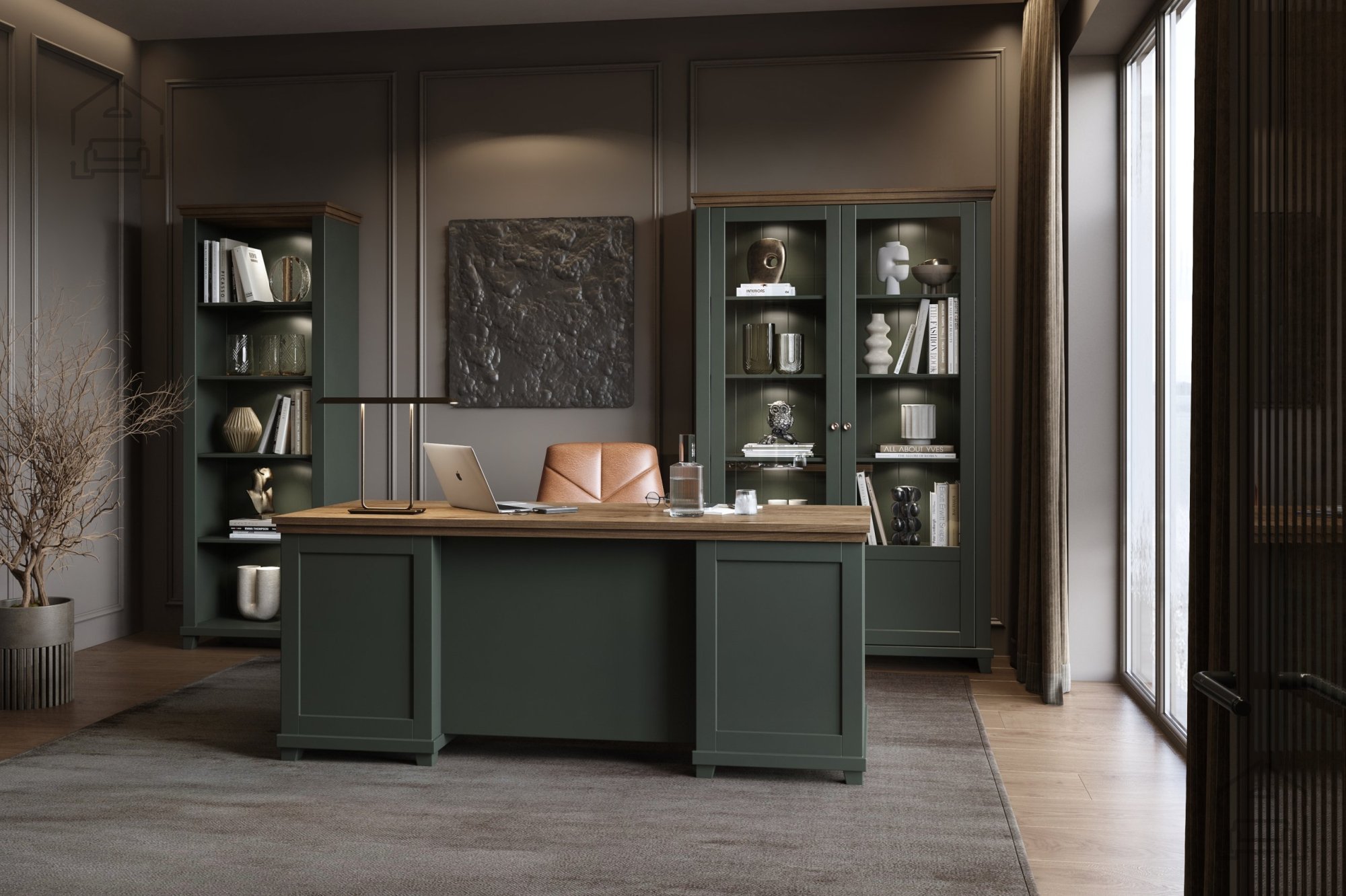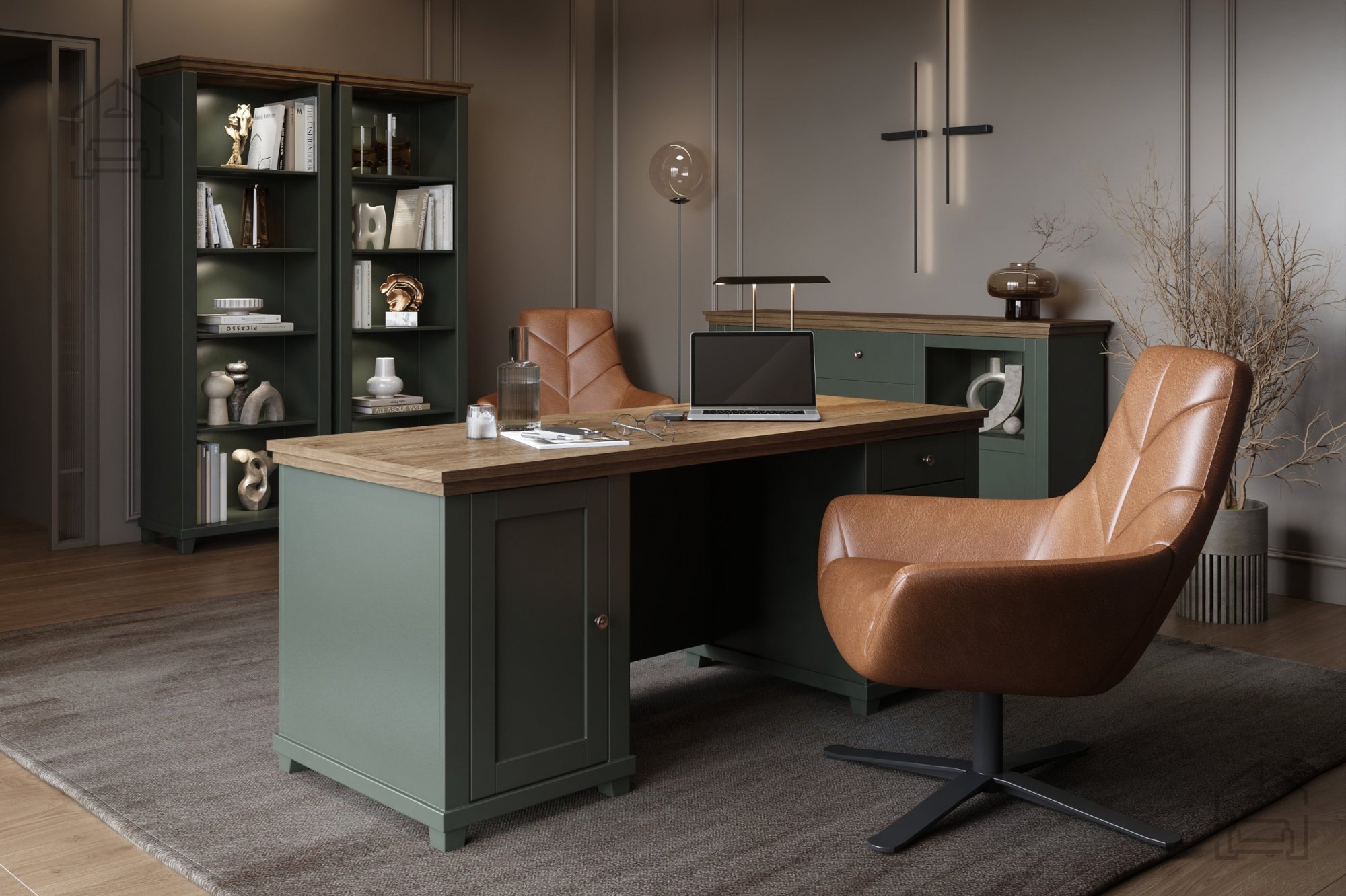 Elegantna barvna kombinacija zelene in hrasta lefkas: komplet za pisarno Evora – Helvetia meble.