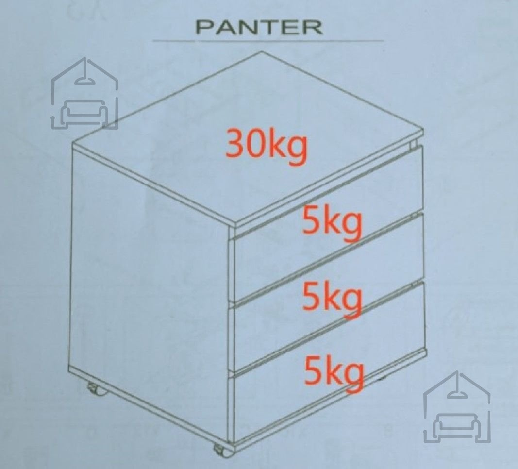 Z dimenzijami 46.5x40x62 cm je predalnik Panter popolnoma prilagodljiv in se zlahka prilega pod mizo ali v kompakten prostor. Njegova konstrukcija iz MDF in kovine zagotavlja stabilnost, medtem ko visok sijaj površine dodaja pridih luksuza.