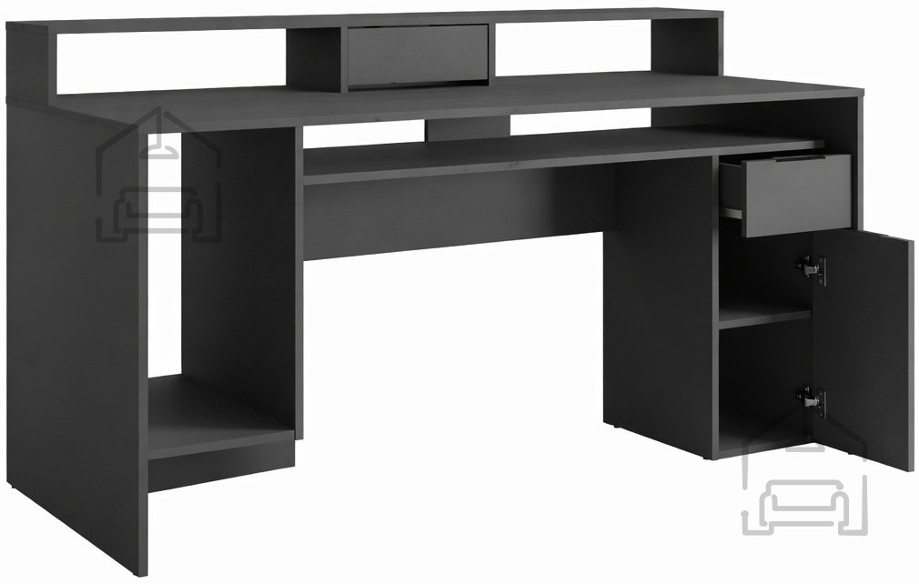 Pisalna miza Rex 60 – Meblosiek je sodoben kos pohištva, ki združuje funkcionalnost, trpežnost in elegantno obliko. Izdelana je iz kakovostne laminirane iverne plošče debeline 16 mm, kar zagotavlja stabilnost in dolgo življenjsko dobo. Barva grafit doda prostoru sodoben, umirjen značaj in se lepo ujema z različnimi notranjimi slogi – od minimalističnega do industrijskega. Miza je izdelana v priznani tovarni Meblosiek na Poljskem, kar potrjuje evropsko kakovost izdelave in natančnost detajlov.