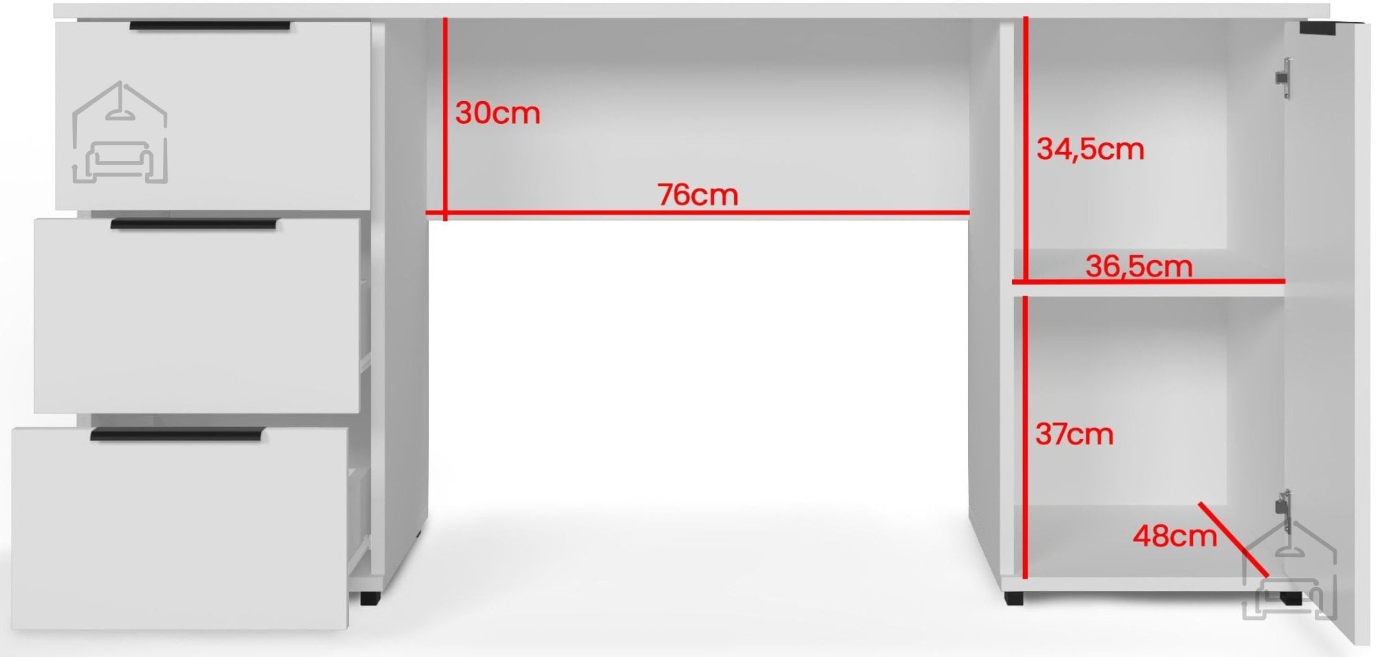 Pisalna miza Tivo je izjemno univerzalna – možno jo je sestaviti v desno ali levo postavitev, kar uporabniku omogoča popolno prilagoditev razporeditvi prostora in osebnim navadam pri delu. Ta prilagodljivost je posebej cenjena v manjših stanovanjih, delovnih kotičkih ali sobah, kjer vsak centimeter šteje.