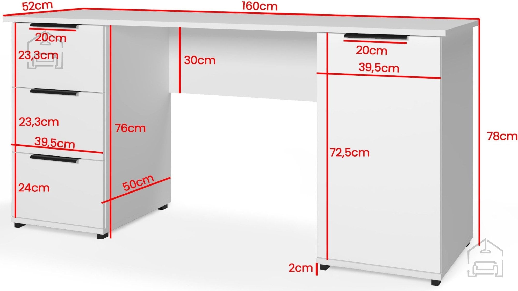 Pisalna miza Tivo blagovne znamke PKMebel je sodobna rešitev za domačo pisarno ali študijski kotiček, kjer sta funkcionalnost in estetika enako pomembni. Izdelana je iz kakovostne laminirane plošče debeline 16 mm, ki zagotavlja trdnost in dolgo življenjsko dobo, obenem pa se ponaša z elegantno belo barvo, ki se zlahka ujema z različnimi stili notranje opreme – od minimalističnega do skandinavskega ali sodobno industrijskega videza. Z dimenzijami 160x52x78 cm nudi obsežno delovno površino za računalnik, dokumente, pripomočke ali ustvarjalne projekte.