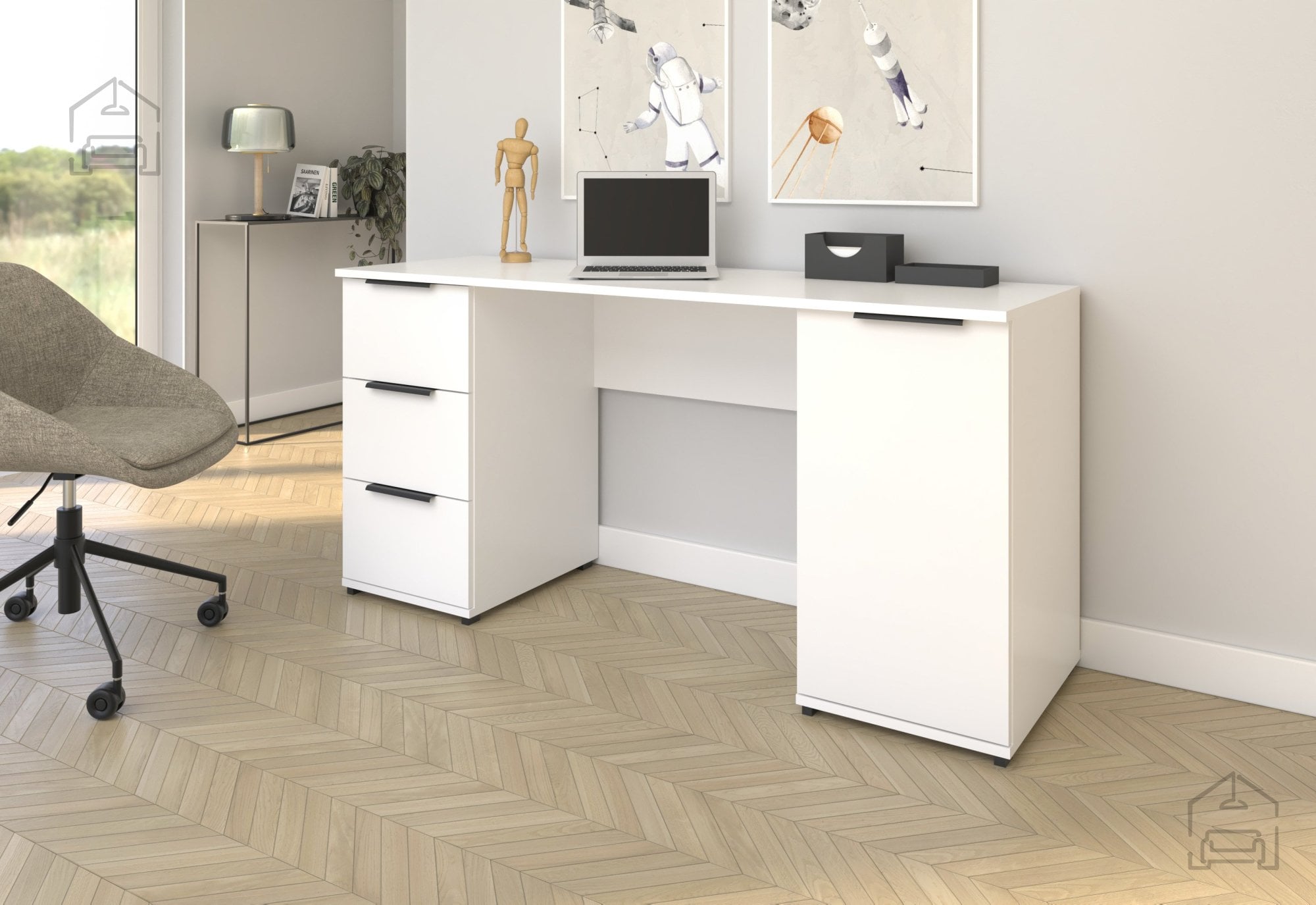 Bela barva še dodatno poudari občutek čistosti in reda, zaradi česar je miza primerna tako za domačo uporabo kot za profesionalno pisarniško okolje. Preprost dizajn in pravokotna oblika omogočata enostavno umeščanje v različne interierje – lahko stoji samostojno ali se kombinira z drugimi pohištvenimi elementi, kot so omarice, regali ali stoli v podobnem stilu.