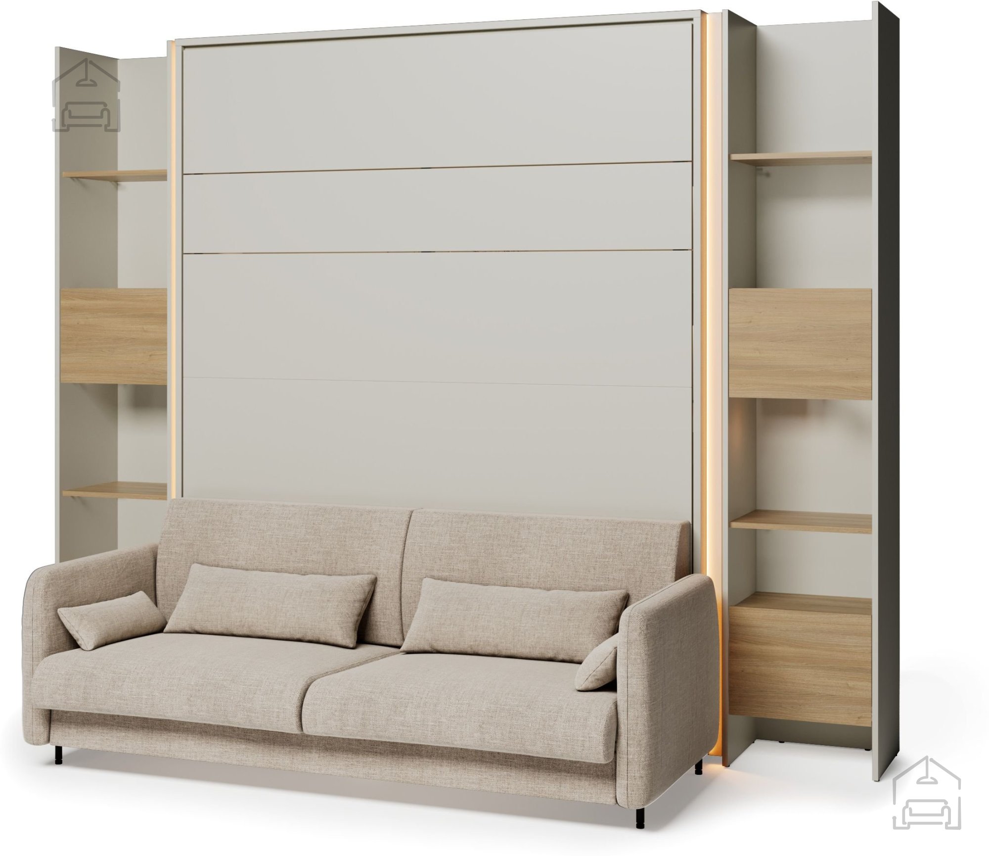 Komplet postelja v omari, BC-17, BC-19 trosed, 3xLED, 2x BC-23 - cashmir/artisan, vzmetnica Lenart - Bed Concept BC-12 - 160x200 cm - casmir/bež 5046960