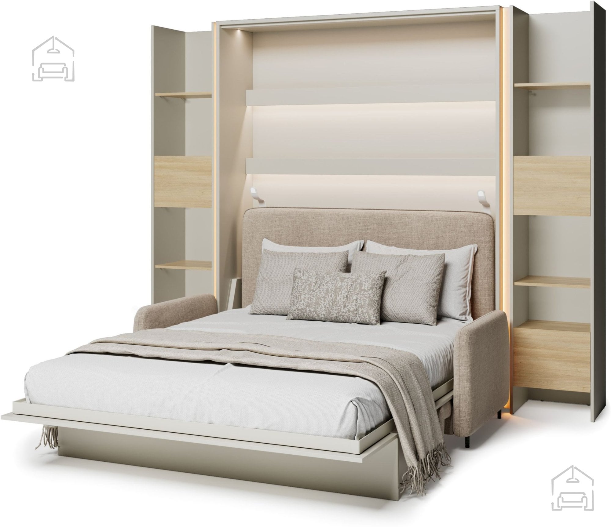 Komplet: trosed BC-19 bež, Postelja v omari BC-12 - 160x200 cm - cashmir, vzglavje BC-17 bež, LED luč, 2x LED luči za postelje BC - cahsmir, 2x Regal BC-23 - cahmir/artisan, 2x LED luč z USB, Vzmetnica Pocket Roll mini cocos - 160x200 cm