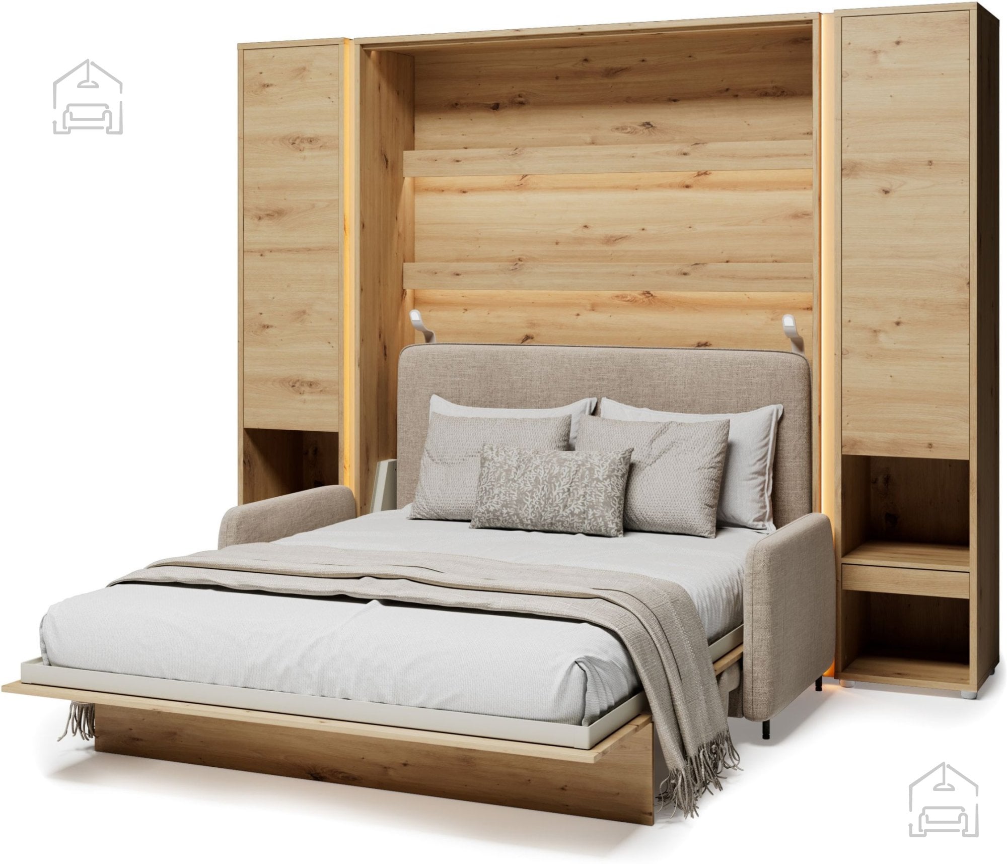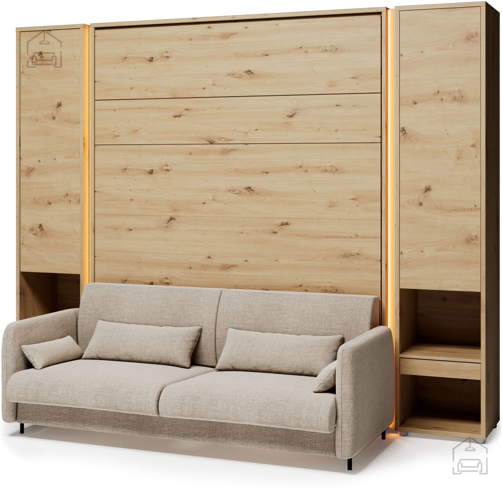 Komplet postelja v omari BC-12, vzglavje BC-17, kavč BC-19, 3xLED, omare 2x BC-07, vzmetnica - 160x200 cm - artisan/bež 5046975