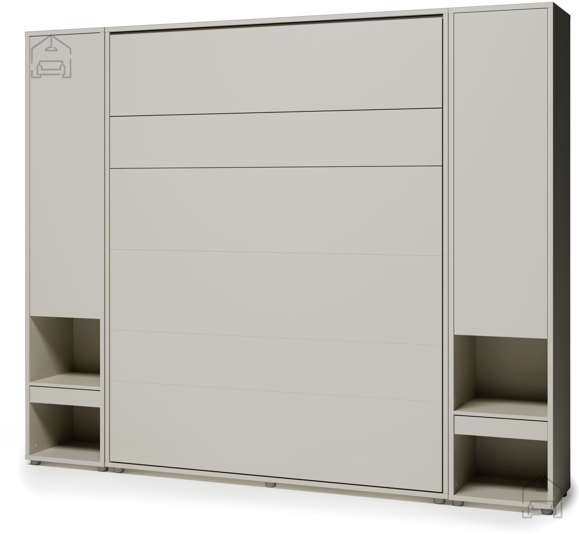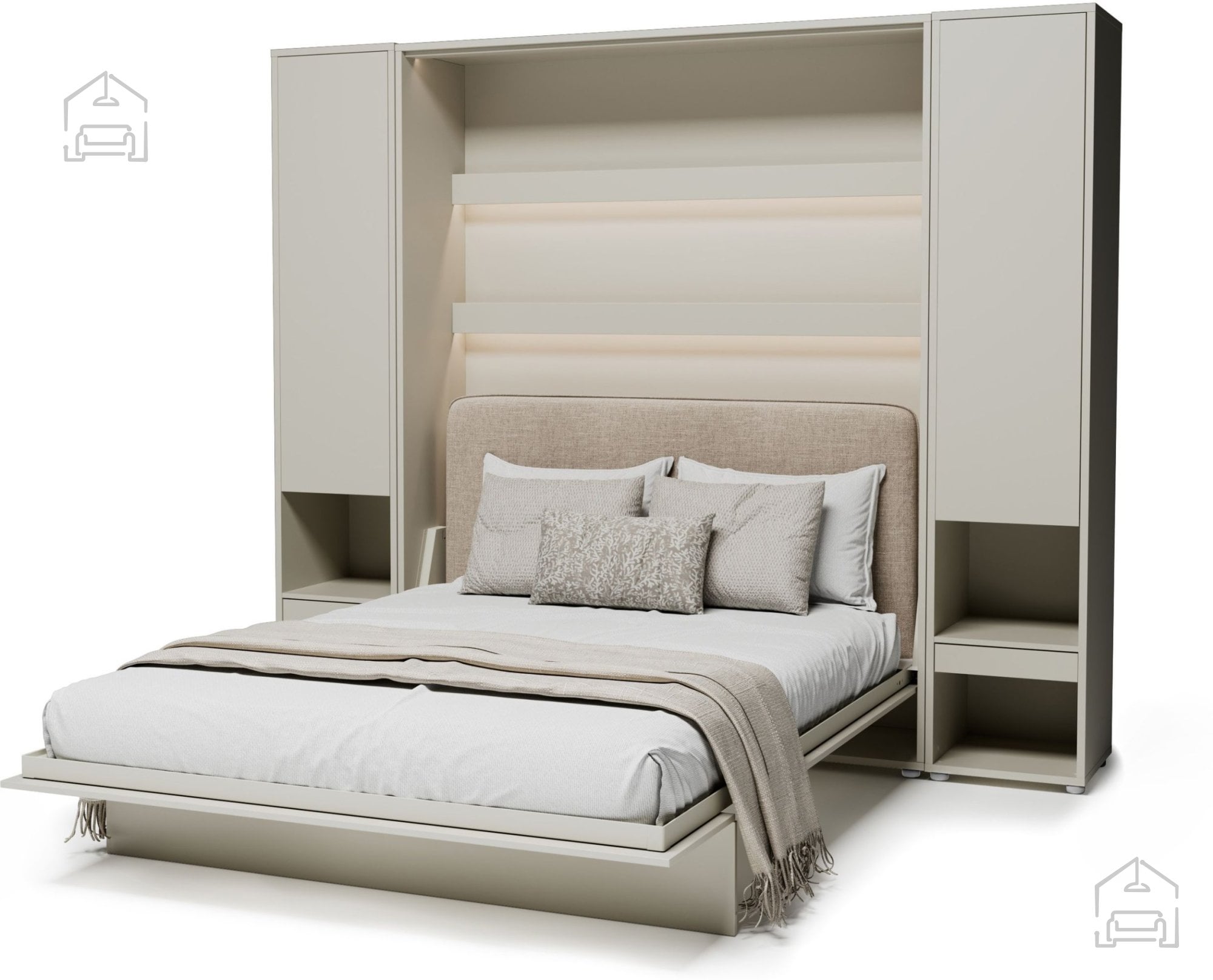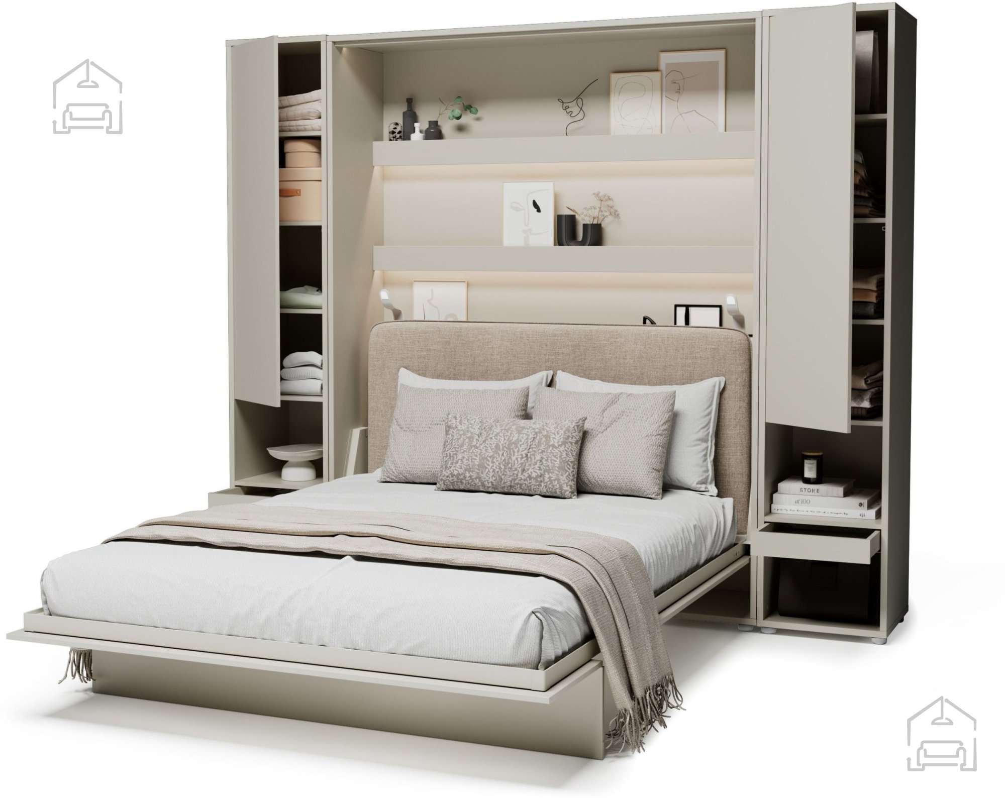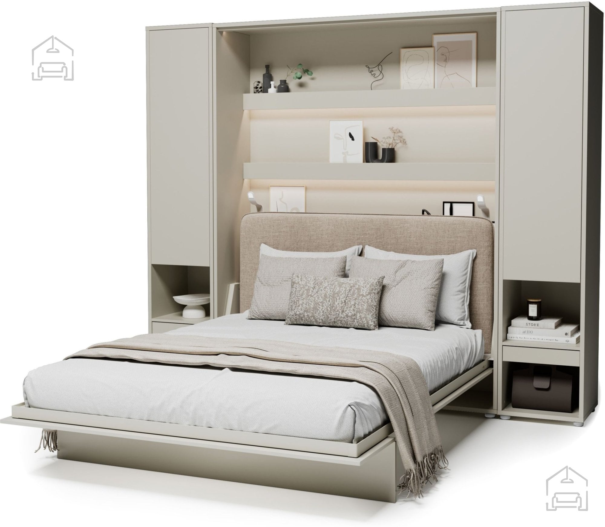 Komplet: Postelja v omari BC-12 - 160x200 cm - cashmir, vzglavje BC-17 bež, LED luč, 2x omara BC-07 - cashmir, 2x LED luč z USB, Vzmetnica Pocket Roll mini cocos - 160x200 cm