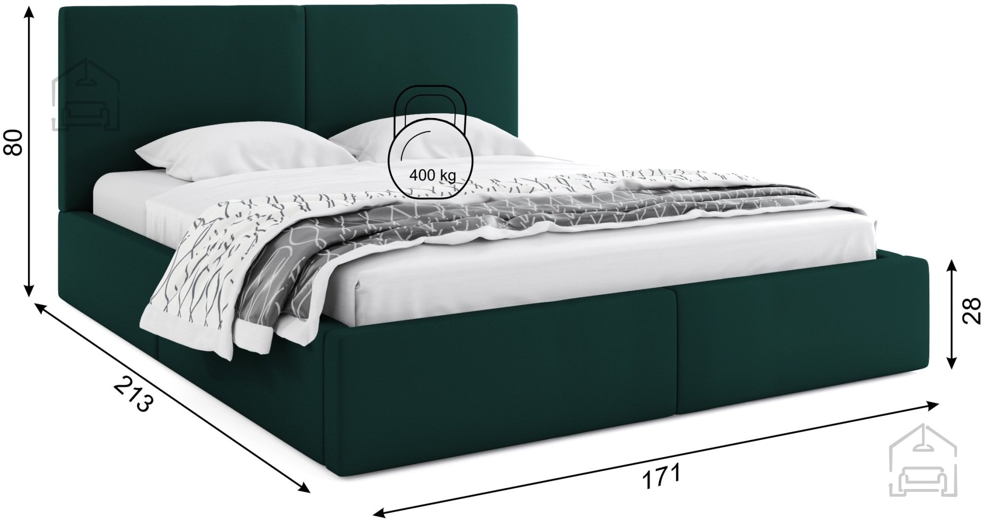 Postelja Hilton - 160x200 cm - zelena