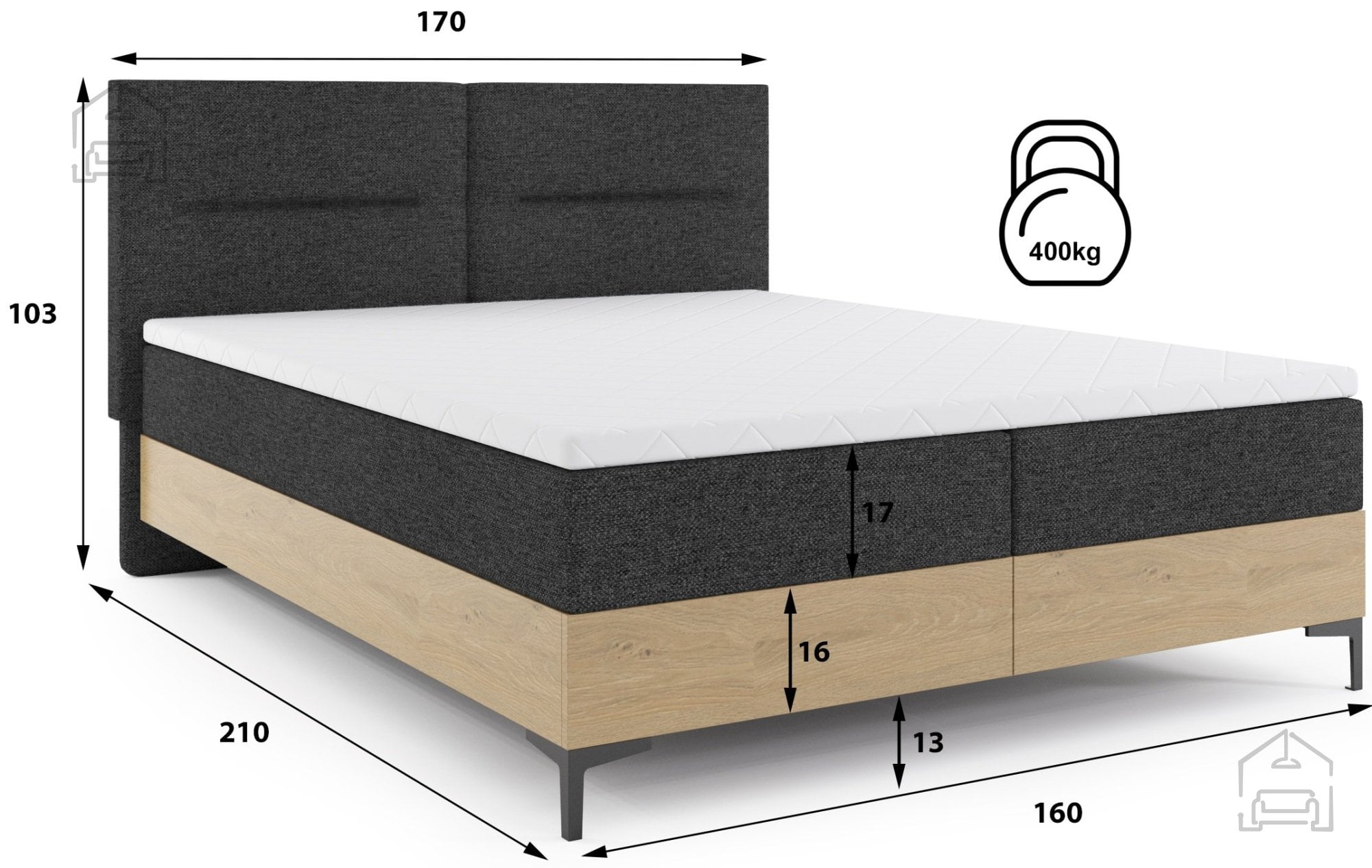 Ustvarite si pravo oazo sprostitve in udobja kar v svoji spalnici. Elegantna in funkcionalna boxspring postelja Imperial je popolna izbira za vse, ki cenite kakovost, brezčasen dizajn in vrhunsko udobje spanja. S svojo kombinacijo topline lesa in sodobne tkanine v barvni kombinaciji hrasta in grafita bo postelja postala osrednji kos vaše spalnice, ki jo bo napolnila s stilom in domačnostjo.
