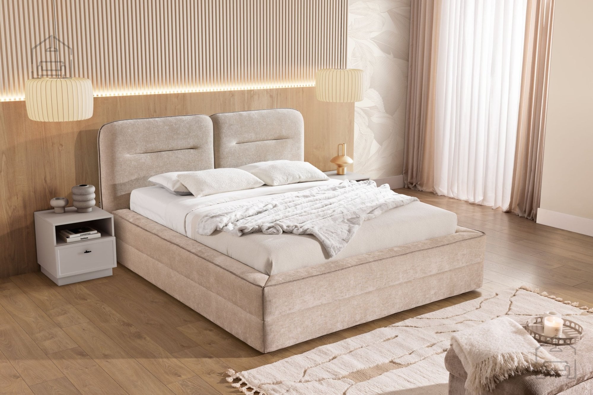 Postelja Tulia II znamke Sedežne garniture Bogart je sodobna tapecirana postelja, ki združuje toplino naravnih materialov in funkcionalno obliko. Izdelana je v Poljski, v tovarni z dolgoletno tradicijo izdelave kakovostnega pohištva. Njen okvir je izdelan iz lesa in iverne plošče, kar zagotavlja stabilnost, medtem ko je površina prevlečena s prijetno tkanino, ki poskrbi za mehak in eleganten videz spalnega prostora. Postelja je zasnovana za udobje in trajnost ter se odlično prilega sodobnim in klasičnim interierjem.