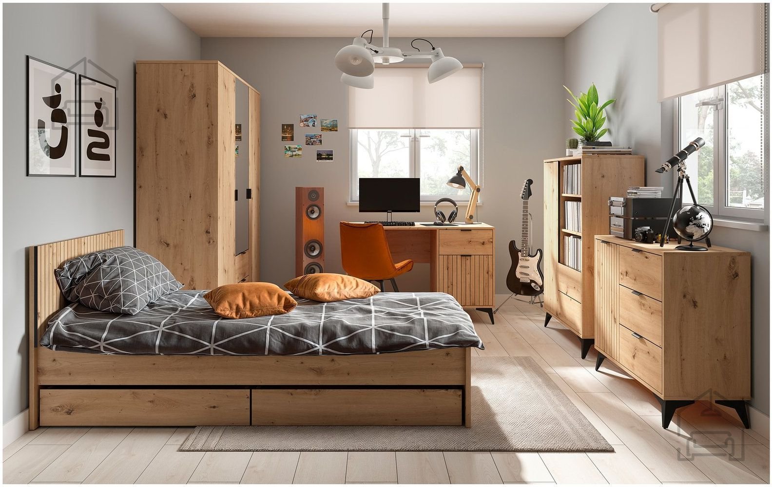 Predal je izdelan iz kakovostne iverne plošče debeline 16 mm in HDF-plošče debeline 3 mm, kar zagotavlja trdnost, odpornost in dolgo življenjsko dobo. Njegova površina v toplih tonih hrasta artisan prinaša občutek naravnosti in elegance, ki se popolnoma poda tako k modernim kot tudi klasičnim notranjim slogom. Z blagovno znamko Black Red White – priznanim proizvajalcem iz Poljske – dobite zagotovilo za visoko kakovost in natančno izdelavo.