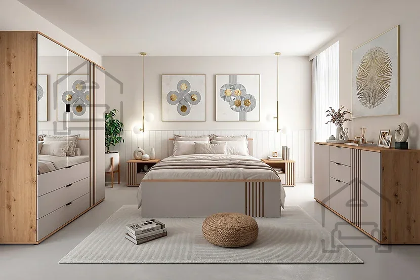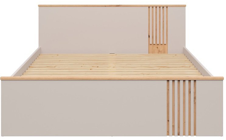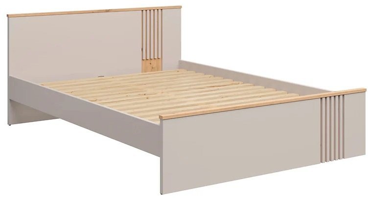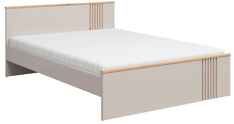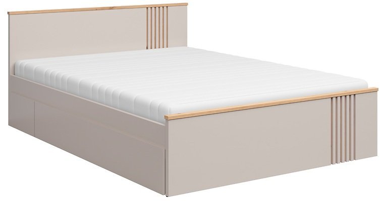 Barvna kombinacija hrasta artisan in kašmirja omogoča preprosto kombiniranje s pohištvom v naravnih ali pastelnih tonih. Postelja se lepo ujema z omarami, nočnimi omaricami ali komodami iz iste kolekcije Brevas, kar omogoča enoten in harmoničen izgled spalnice. Površine so gladke, linije čiste in brez nepotrebnih detajlov, kar poudarja sodoben dizajn z občutkom za toplino doma.