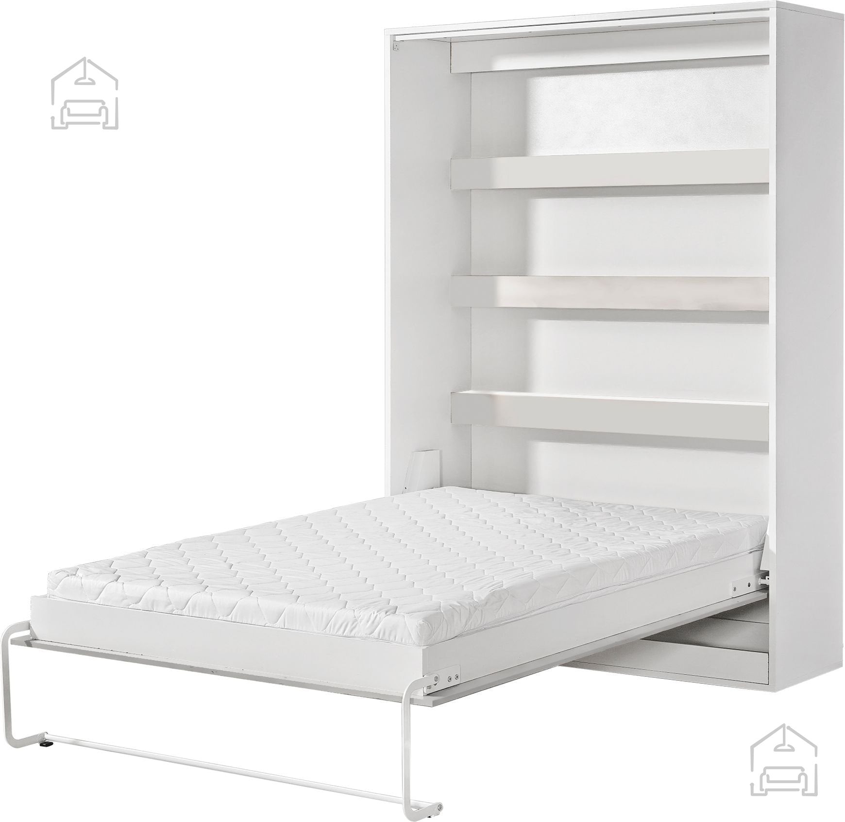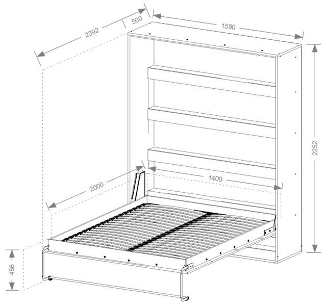 Sistem vključuje praktičen dvižni mehanizem, ki omogoča enostavno odpiranje in zapiranje postelje. Postelja se dvigne v navpični položaj in se popolnoma prilega omari, kar pomeni, da ne zavzame dodatnega prostora. Mehanizem je zasnovan za varno uporabo, z gladkim in uravnoteženim gibanjem. To omogoča, da posteljo brez napora uporablja vsak član gospodinjstva.
