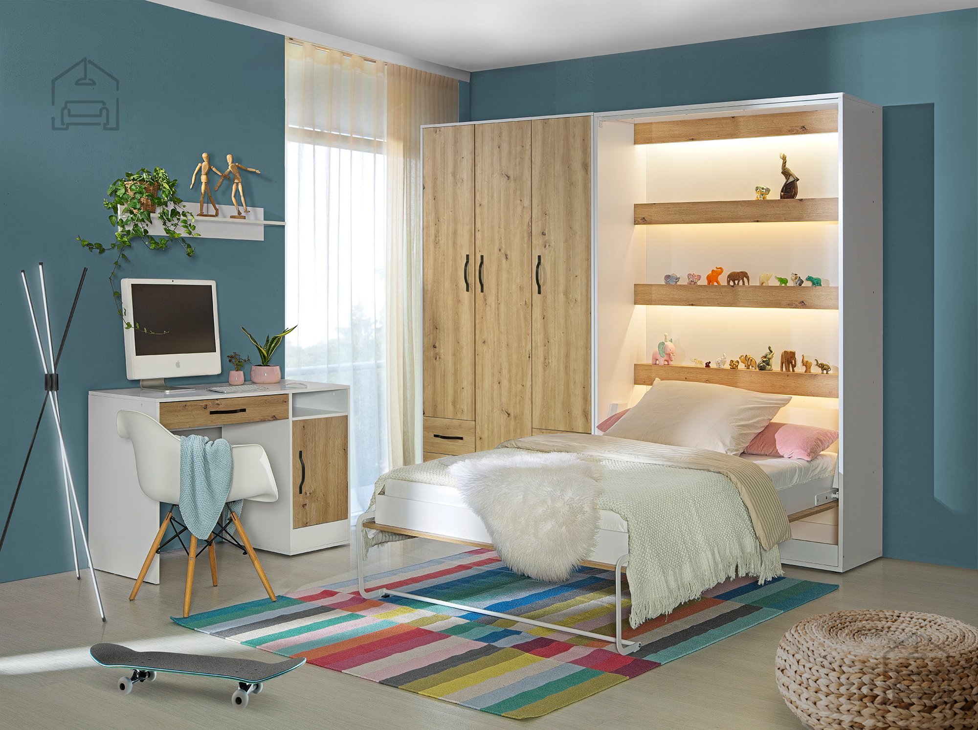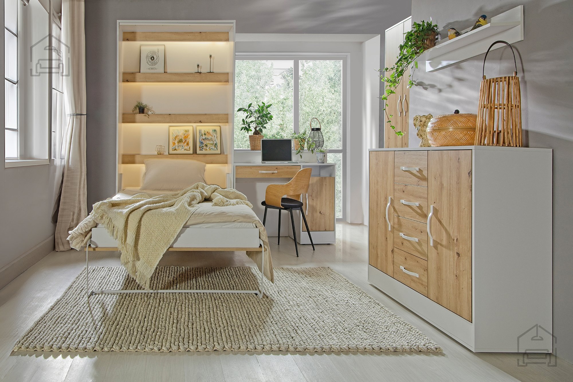 Pokončna postelja Perfect v kombinaciji barv hrast in bela se lepo poda tako v sodobne kot tudi klasične interierje. Topel odtenek hrasta vnese občutek domačnosti, bela barva pa prostoru doda svežino in svetlobo. Zahvaljujoč premišljenim ročajem v dveh barvnih izvedbah – beli in črni – lahko uporabnik prilagodi videz po svojem okusu in uskladi posteljo z drugimi kosi pohištva v prostoru.