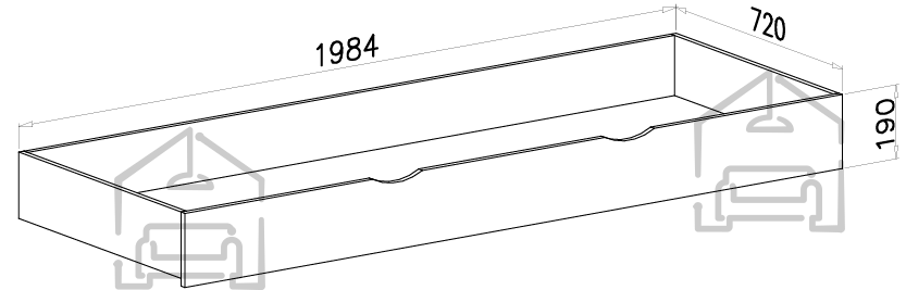 Predal meri 198,4×72×19 cm in je zasnovan za uporabo s posteljami z ležiščno površino 90×200 cm. Njegove mere omogočajo prostorno shranjevanje posteljnine, odej, blazin ali sezonskih oblačil. Kljub kompaktnim zunanjim meram nudi dovolj prostora, da ohranja red pod posteljo, ne da bi pri tem posegal v udobje ali estetiko spalnega prostora.