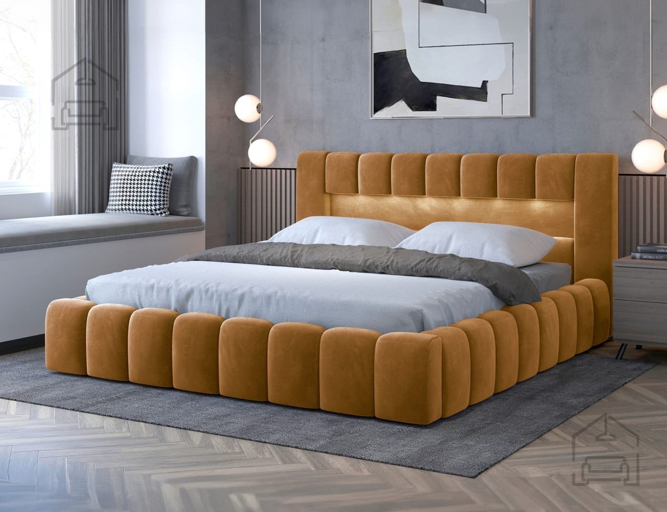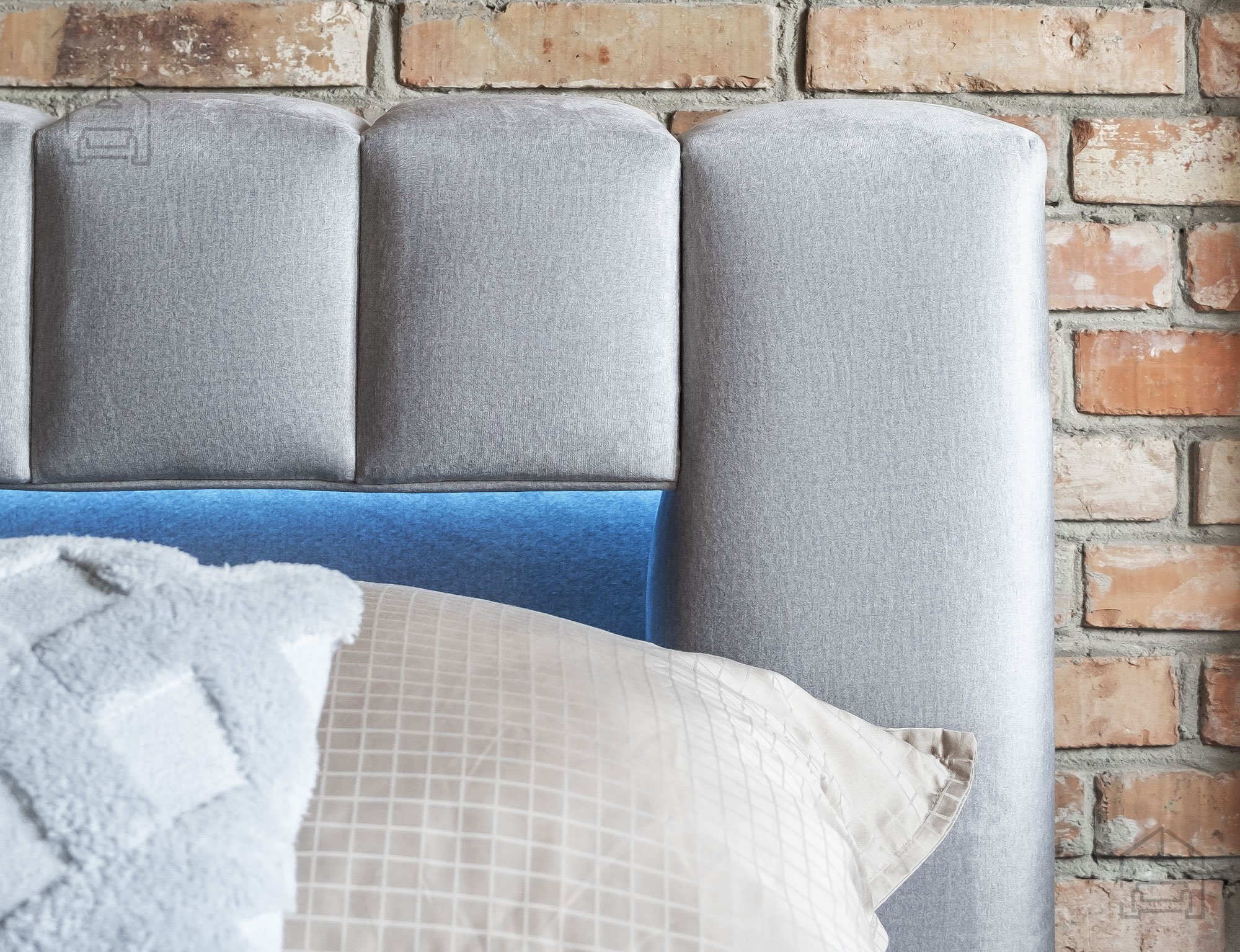 Model Lamica je prava predstavnica modernega glamur stila, ki v prostor vnese pridih razkošja, ne da bi pri tem deloval pretirano. Njeno visoko vzglavje je oblikovano z dodatno plastjo pene, kar zagotavlja izjemno mehkobo in udobje, še posebej med branjem ali gledanjem televizije v postelji. Tapeciran okvir je oblečen v kakovostno tkanino, ki jo je mogoče izbrati v različnih barvah – tako se postelja popolnoma prilagodi estetiki vaše spalnice. Na sliki je prikazana v tkanini Monolith 84, ki ponuja izjemno prijeten otip in visoko odpornost proti obrabi.