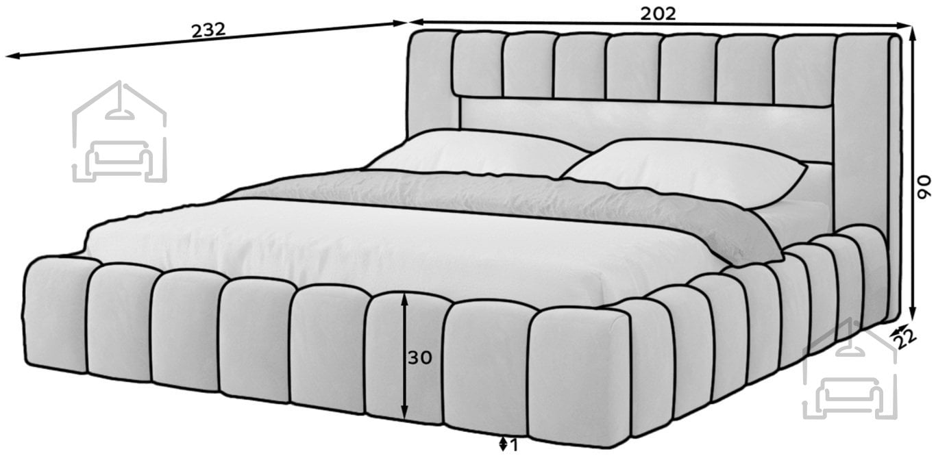 Postelja meri 182 cm v širino, 232 cm v globino in 90 cm v višino, kar zagotavlja uravnotežene proporcije in primerno velikost za prostorne spalnice. Površina za spanje 180 × 200 cm nudi dovolj prostora za sproščen spanec dveh oseb. Konstrukcija je izdelana iz trpežnega lesa, ki zagotavlja stabilnost, medtem ko oblazinjen okvir prinaša občutek udobja in topline. Tkanina Monolith 84, predstavljena na fotografiji, je znana po svoji odpornosti proti obrabi in enostavnem čiščenju, zato bo postelja dolgo ohranila svoj brezhiben videz.