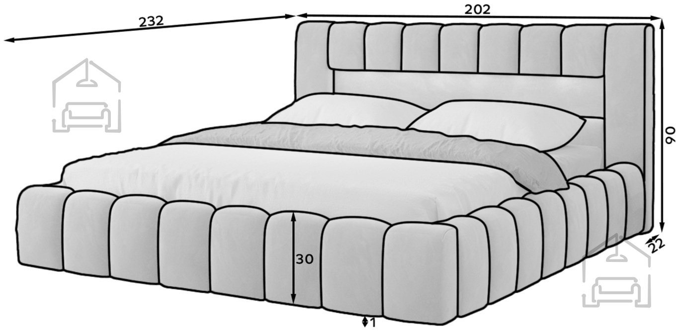 Postelja Lamica izstopa po svojem lesenem okvirju, ki zagotavlja stabilnost in dolgo življenjsko dobo. Visoko vzglavje je mehko oblazinjeno in dopolnjeno z dekorativnimi šivi, kar ustvarja razkošen videz, primeren za različne stile spalnic – od modernih do klasičnih. Leseni elementi so skrbno obdelani, robovi so gladki, kar dodatno poudarja kakovost izdelave.