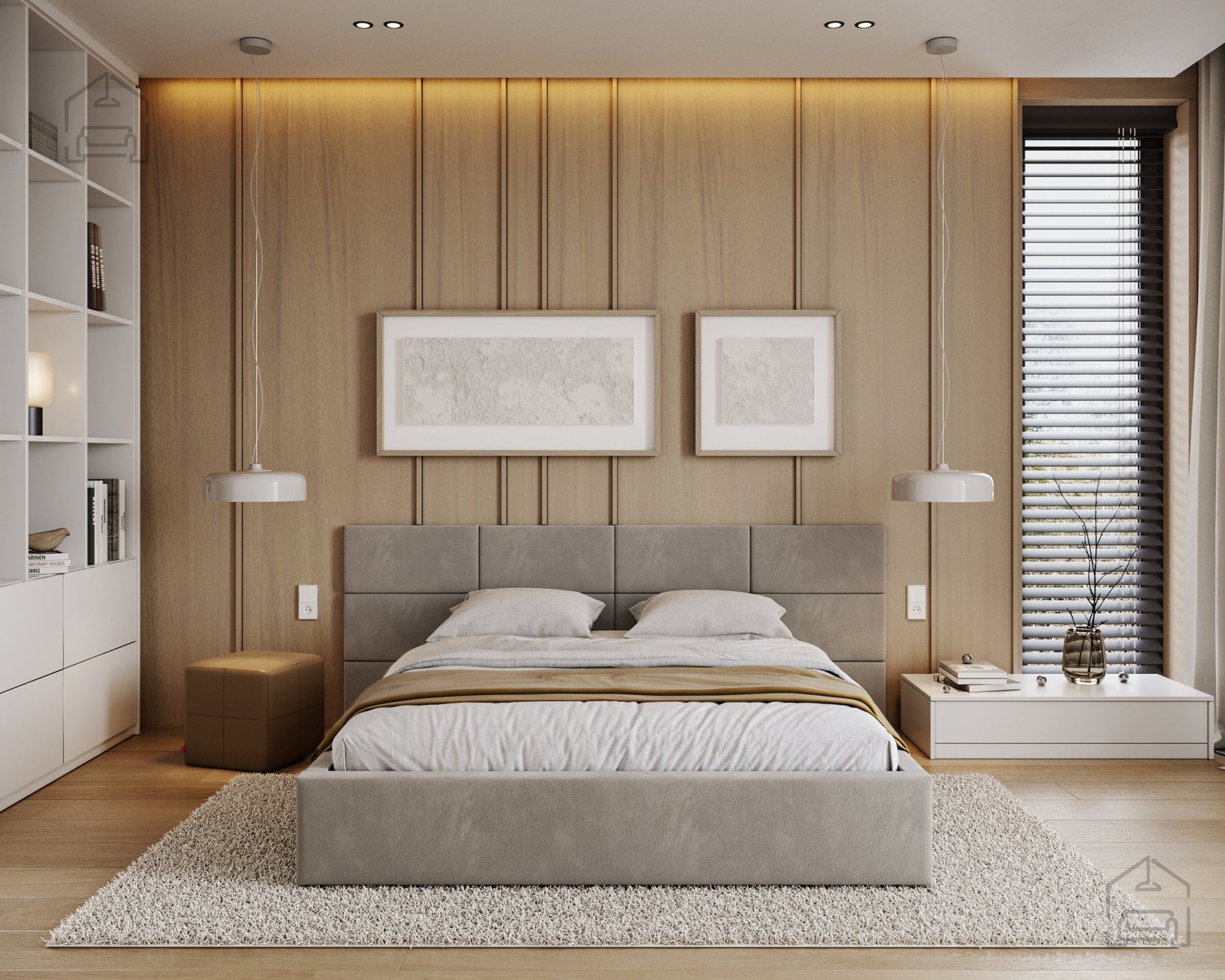 Vzglavje postelje je izdelano iz kock, ki morate namestiti na steno spalnice