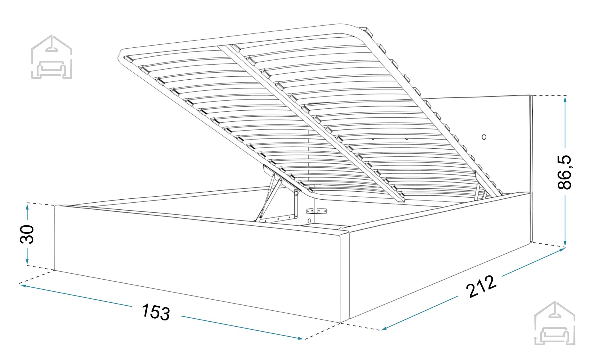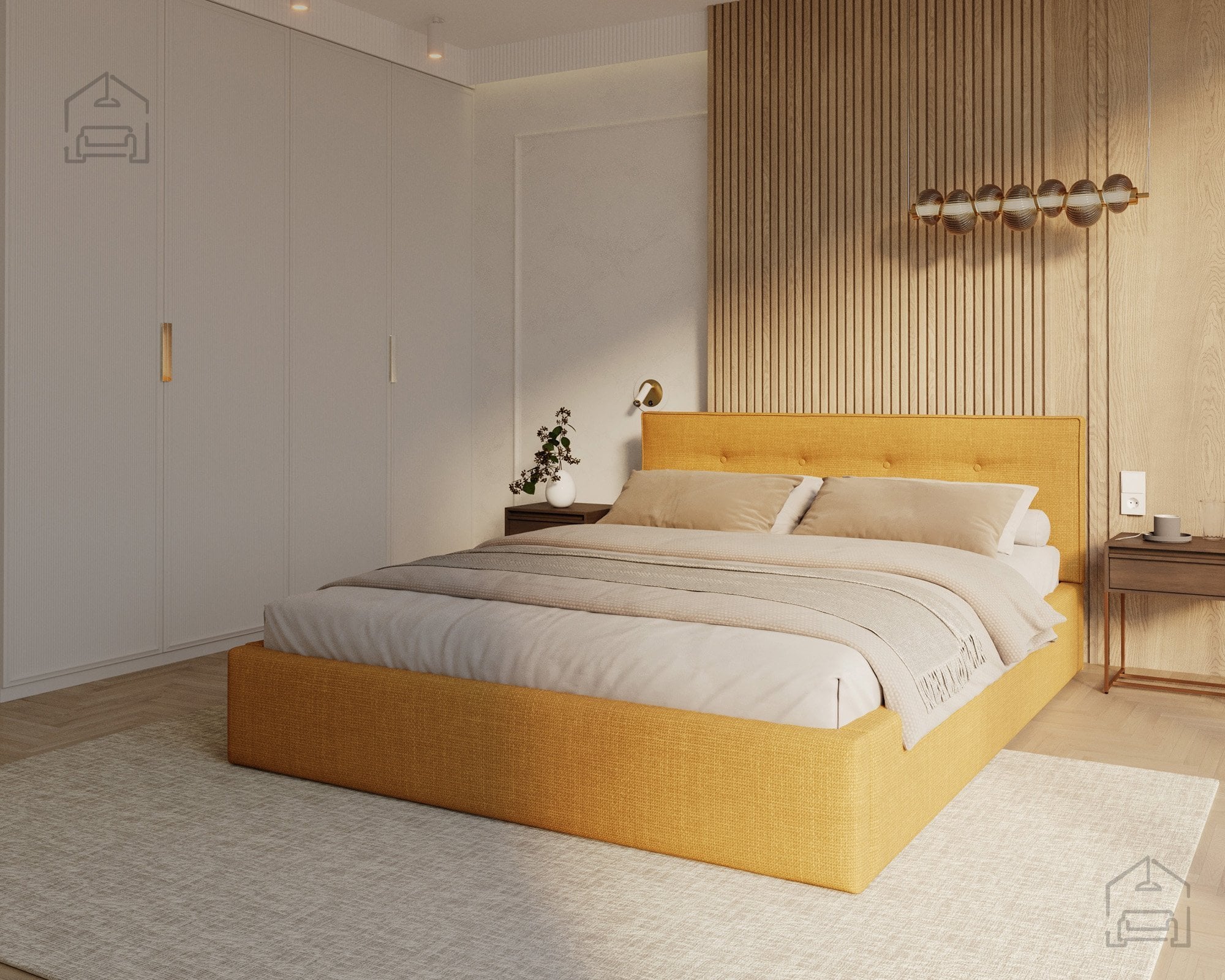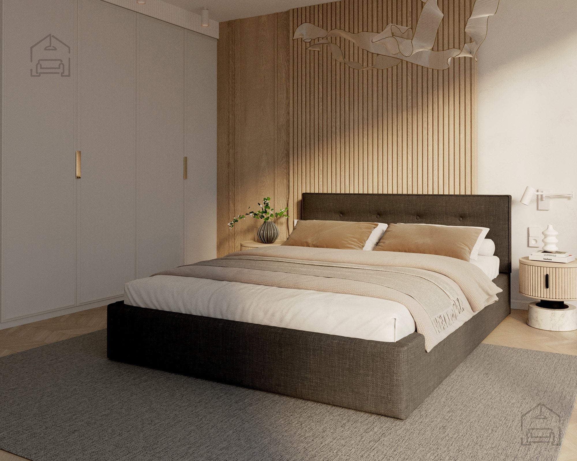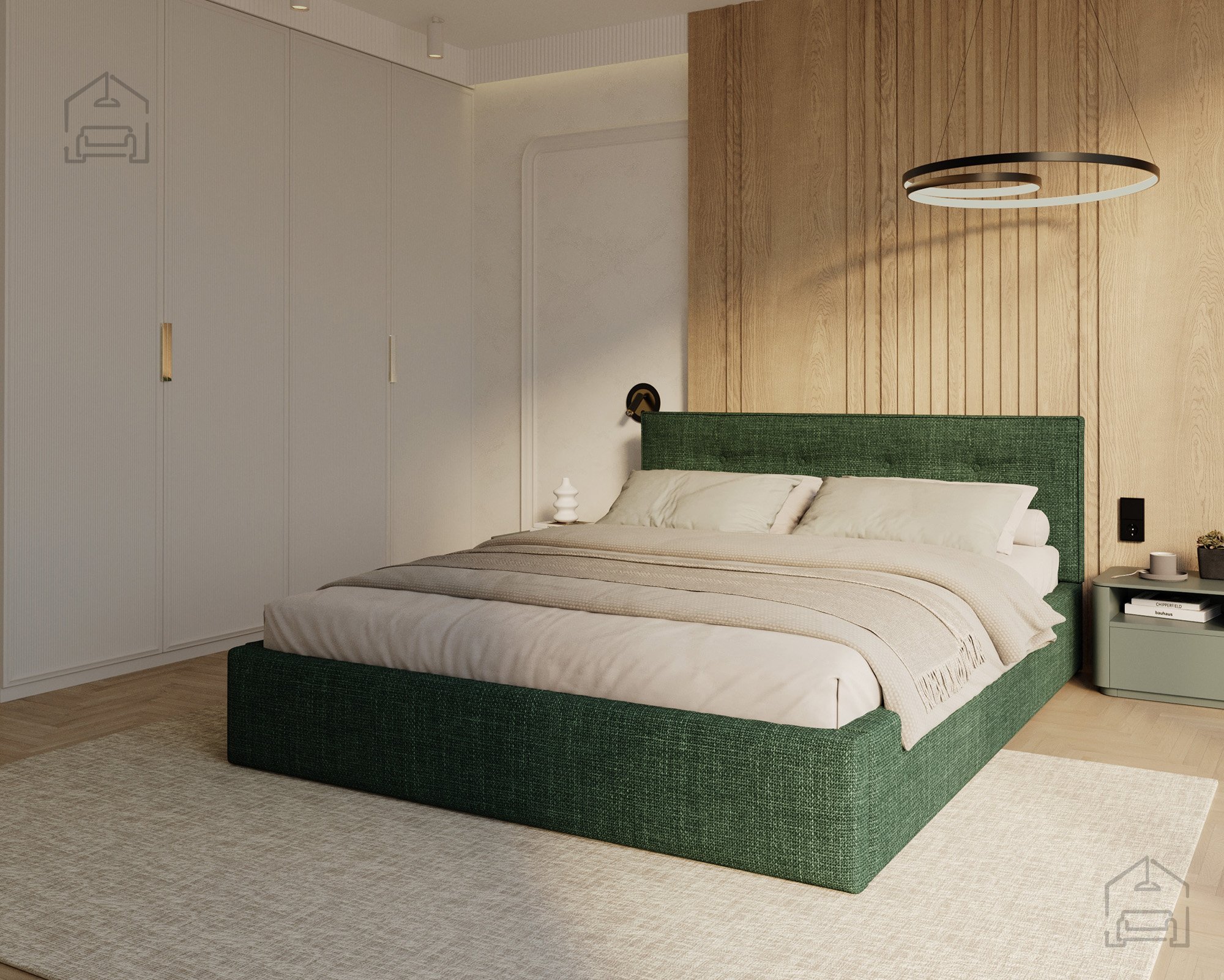 Postelja Tulsa ponuja velik predal za posteljnino, ki je dostopen s pomočjo dvižnega sistema. Leseni dvižni mehanizem zagotavlja stabilnost in tiho delovanje, po želji pa je mogoče izbrati tudi jeklen mehanizem za doplačilo, kar še poveča nosilnost in vzdržljivost konstrukcije. Takšna rešitev omogoča, da pod ležiščem pridobite dodaten prostor za shranjevanje posteljnine, odej, blazin ali sezonskih oblačil, pri čemer ohranite urejen in čist videz spalnice.