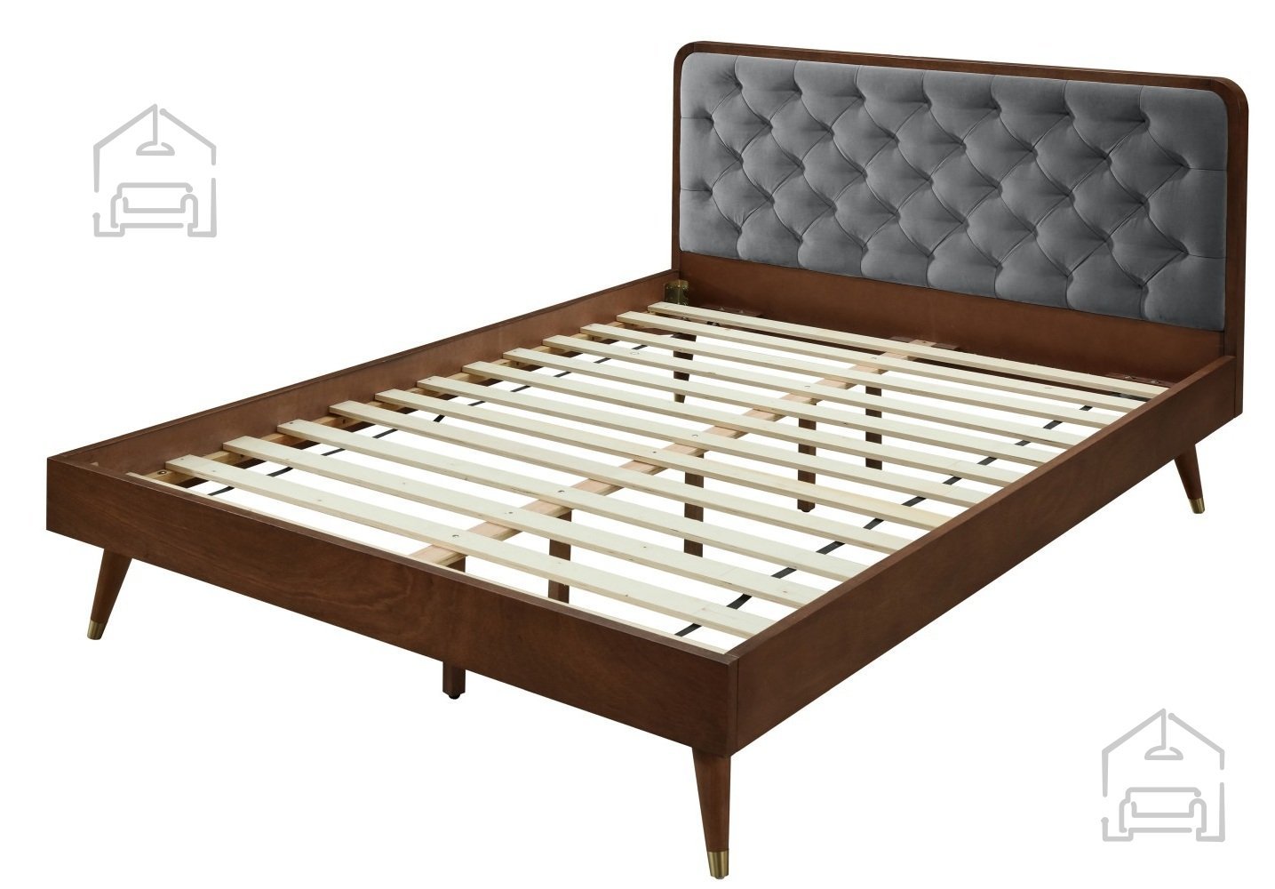 Postelja Cassidy nudi prijetno kombinacijo mehkobe in stabilnosti. Zaradi kompaktne velikosti jo je mogoče umestiti tako v glavno spalnico kot tudi v manjši gostinski prostor ali mladinsko sobo. Masiven lesen okvir zagotavlja trpežnost, medtem ko tkanina poskrbi za udobje in vizualno toplino. Detajli v barvi oreha in hrasta artisan vnesejo občutek naravnosti, ki se lepo ujema z drugimi lesenimi elementi v prostoru.