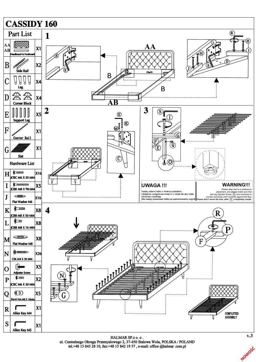 Sodoben dizajn in kakovostna izvedba zagotavljata, da bo postelja Cassidy znamke Halmar dolgo časa ohranjala svoj privlačen videz in funkcionalnost. Enostavna montaža, stabilna konstrukcija in premišljena izbira materialov so razlogi, zakaj je ta model odlična izbira za tiste, ki iščejo zanesljivo, elegantno in udobno posteljo za vsakodnevno uporabo.
