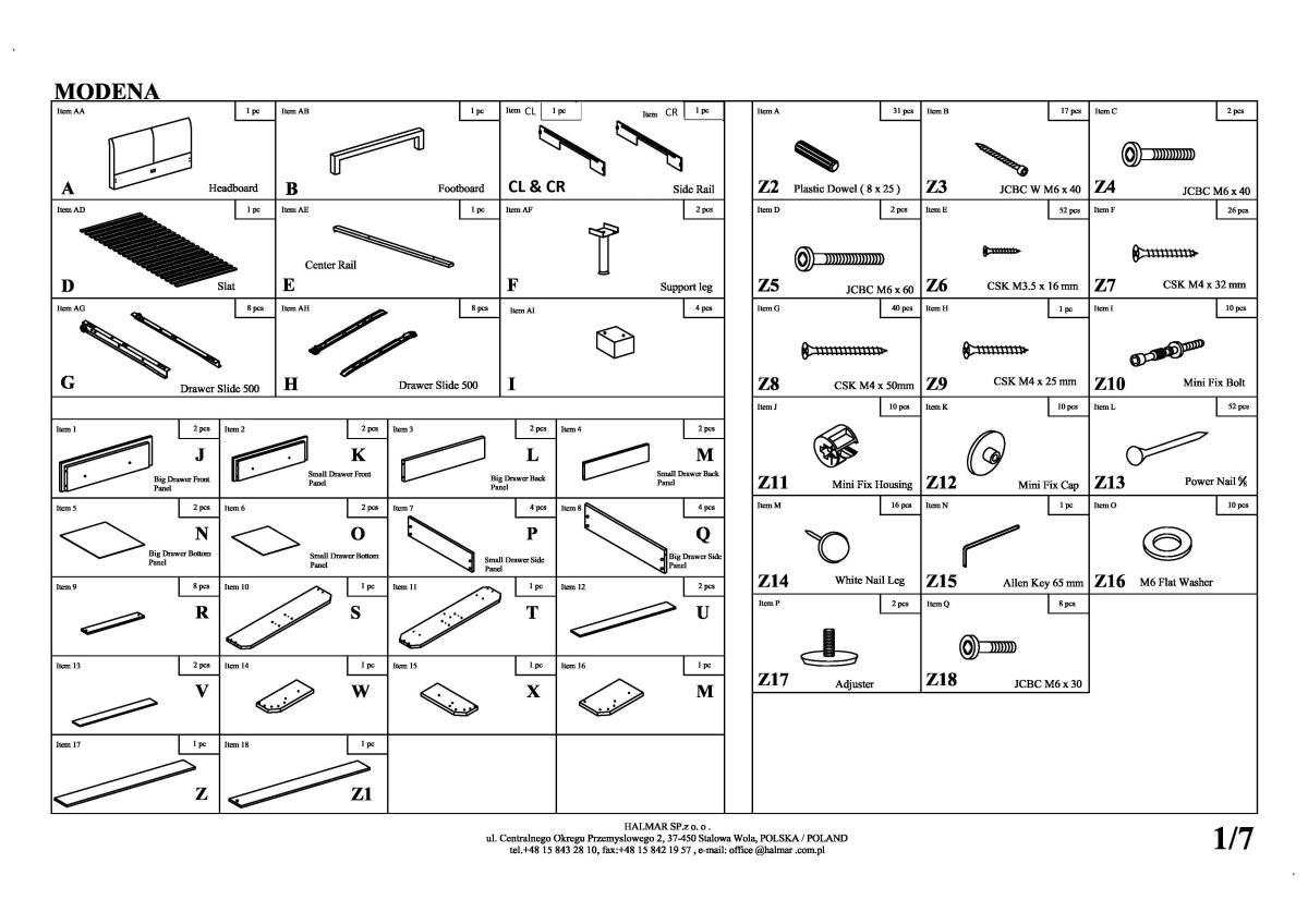 Postelja Modena 3 je izdelana v tovarni Halmar, znanem proizvajalcu pohištva, ki združuje sodobno oblikovanje in funkcionalne rešitve. Država porekla izdelka je Kitajska, kar pomeni, da proizvodnja poteka v skladu s sodobnimi industrijskimi standardi. Halmar je blagovna znamka, ki je na evropskem trgu prepoznana po zanesljivosti, kakovostnih materialih ter natančni izvedbi detajlov.