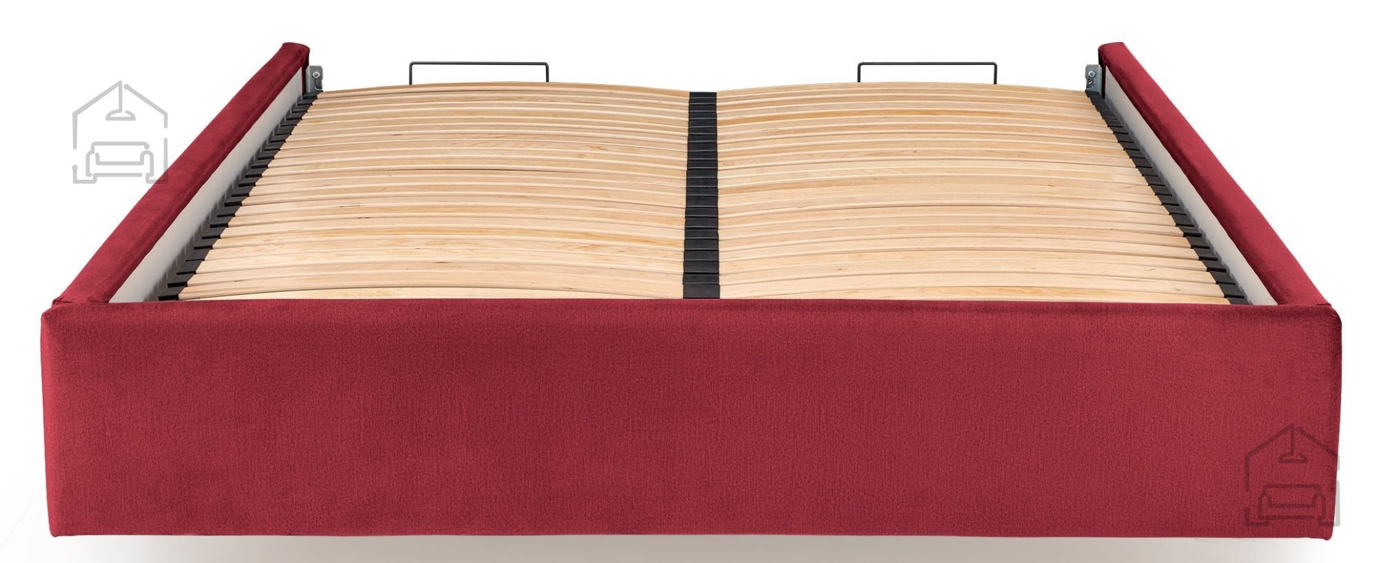 Ohišje postelje je oblečeno v mehko žametno tkanino, ki daje prostoru občutek topline in razkošja. Bordo odtenek Monolith 59 prinaša prefinjen poudarek, ki se lepo ujema z različnimi barvnimi shemami spalnic. Okvir iz iverala zagotavlja stabilnost in trajnost, hkrati pa ohranja prijetno lahkotnost konstrukcije. Površina žameta je prijetna na dotik in hkrati enostavna za vzdrževanje, kar omogoča dolgotrajno estetsko vrednost postelje.