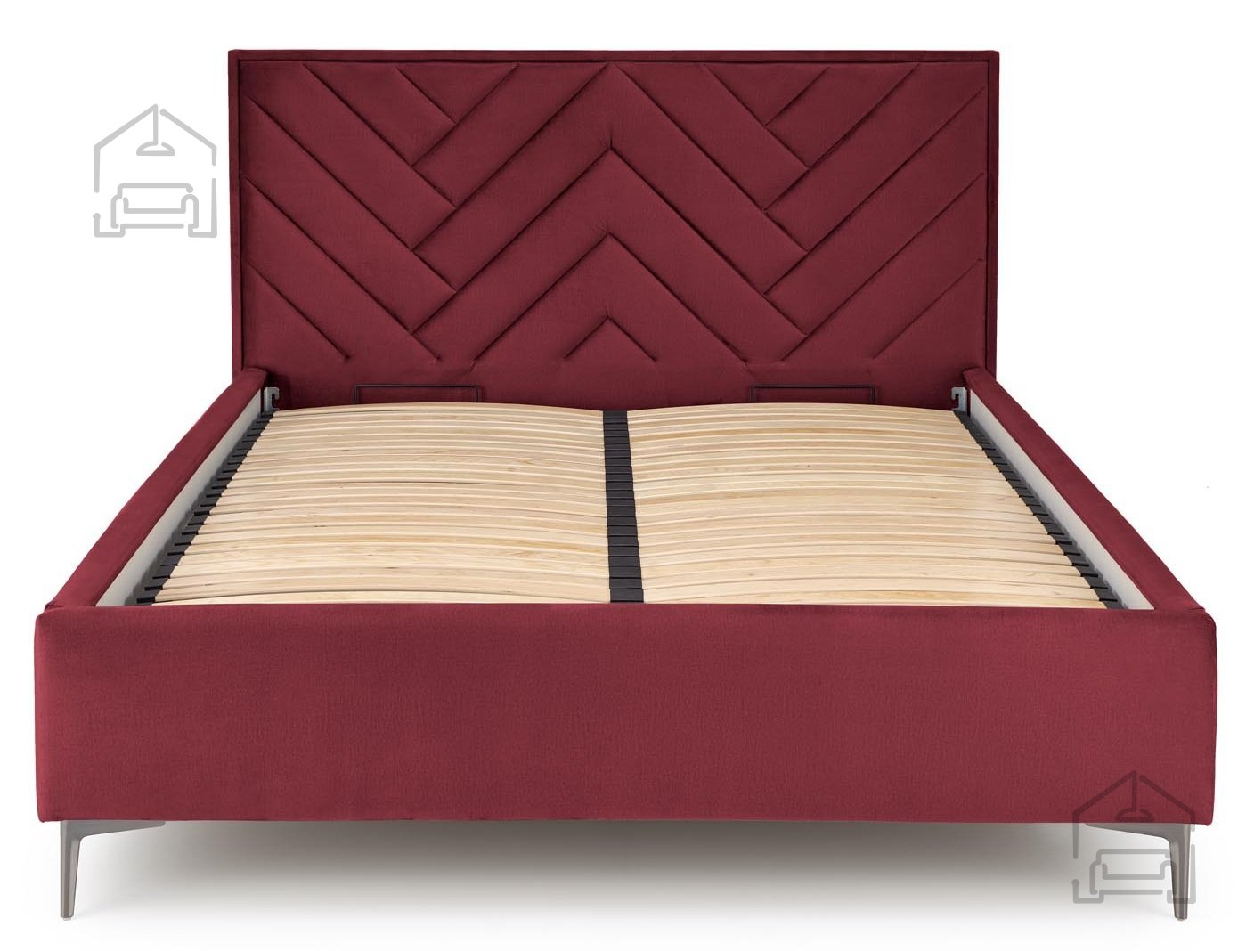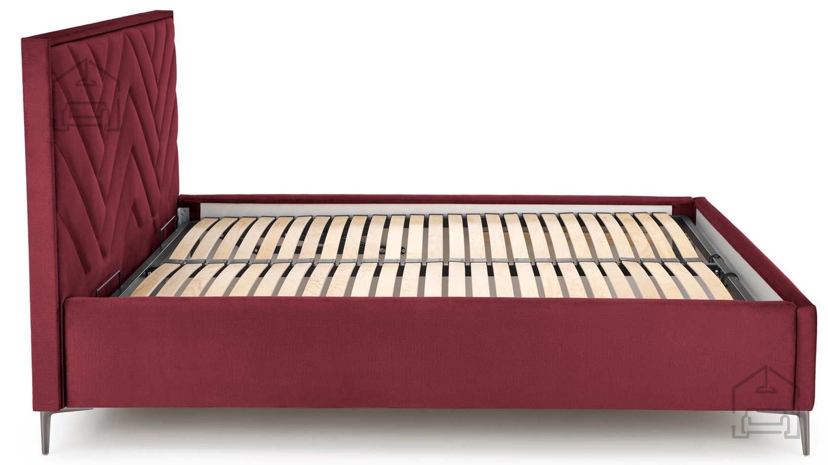 Posteljni okvir Modulo je zasnovan tako, da omogoča enostavno sestavljanje in stabilno konstrukcijo po montaži. Vsi sestavni deli so natančno obdelani in pripravljeni za hitro namestitev. Ko je postelja sestavljena, ponuja čvrsto podporo za vzmetnico in prijetno spalno površino. Žametna prevleka je odporna na drgnjenje, kar pomeni, da bo postelja dolgo ohranila svoj privlačen videz. Bordo barva je dovolj izrazita, da postane središče prostora, a hkrati dovolj elegantna, da se ujame s številnimi dekorativnimi slogi – od klasičnega do modernega minimalizma.