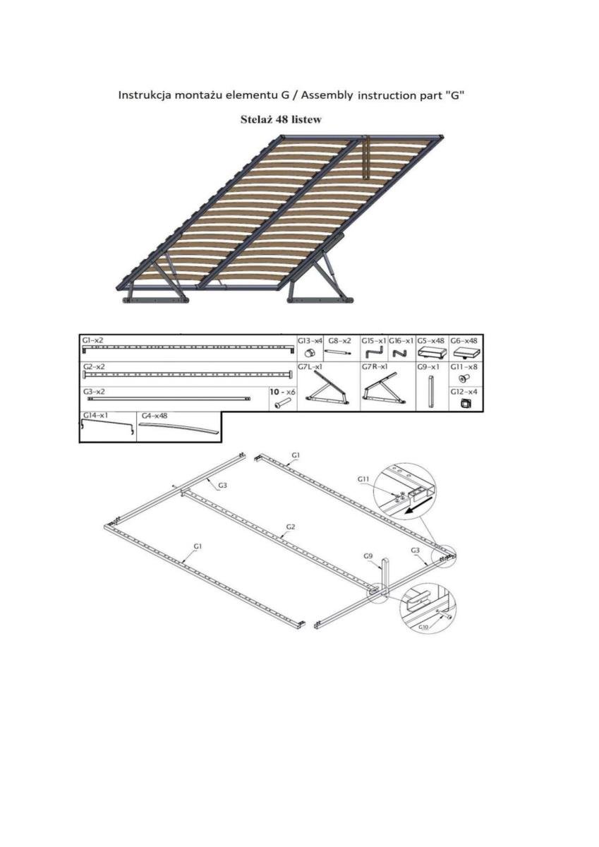 Postelja vključuje kakovostno letveno dno z razmikom letvic 2,5 cm. Takšna zasnova omogoča dobro prezračevanje vzmetnice in podpira njeno enakomerno obremenitev, kar prispeva k daljši življenjski dobi. Letveno dno je primerno za vse vrste vzmetnic, zato lahko izbirate med različnimi modeli glede na svoje želje po udobju in podpori. Posteljni okvir se dobavlja brez vzmetnice, vendar se odlično ujema z modeli vzmetnic velikosti 160x200 cm, kot sta na primer Polaris 160 ali Syriusz 160.