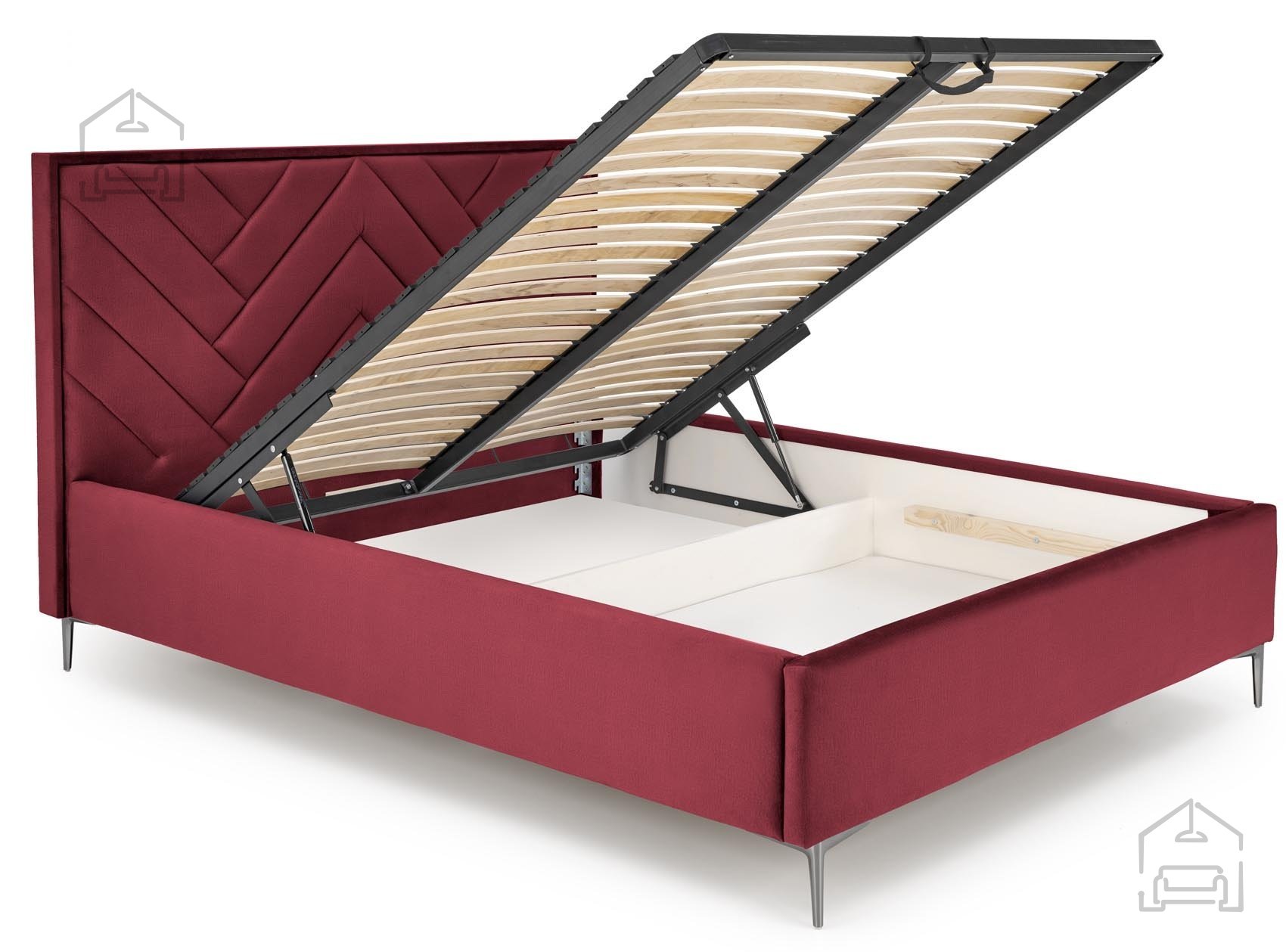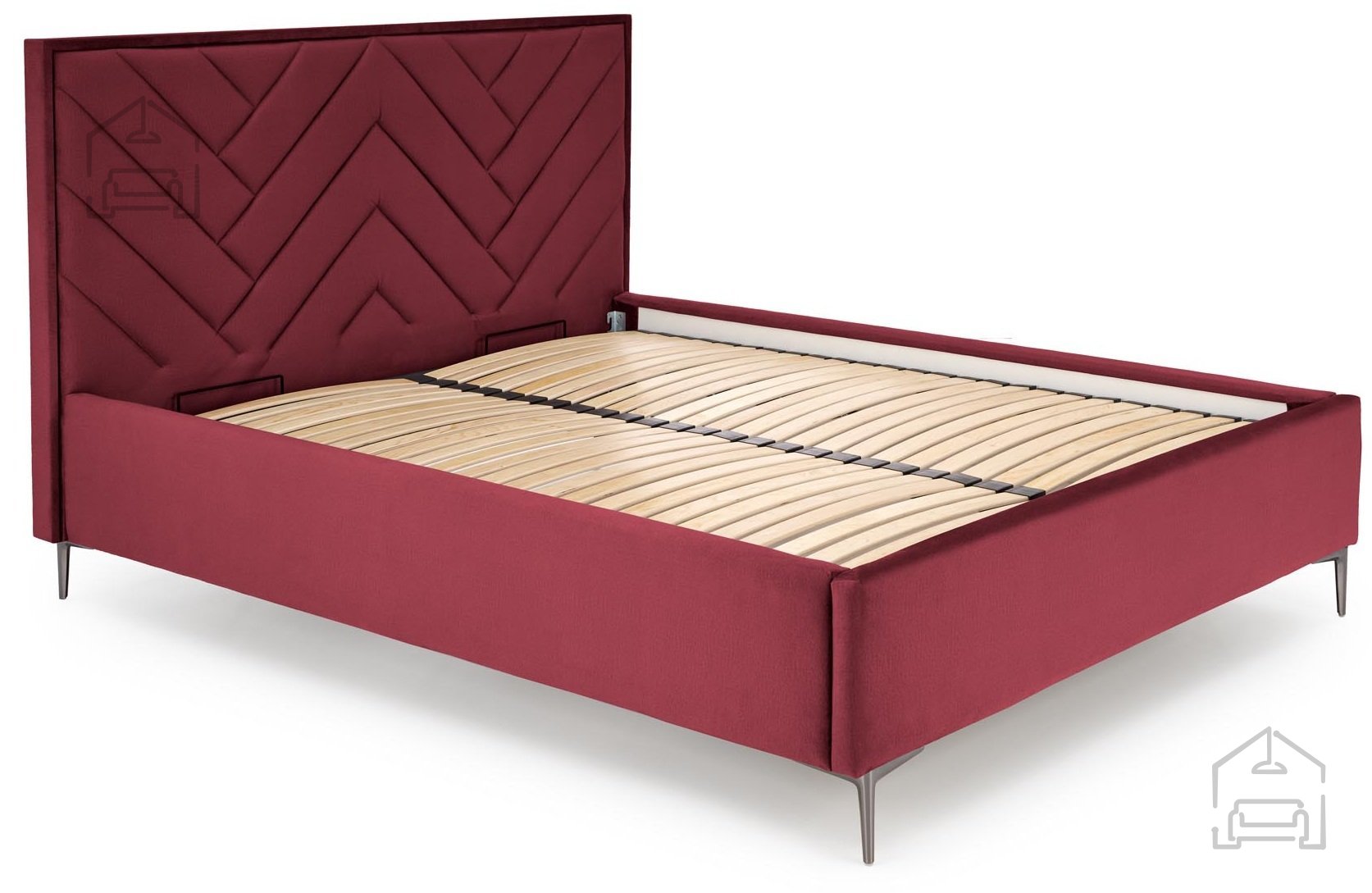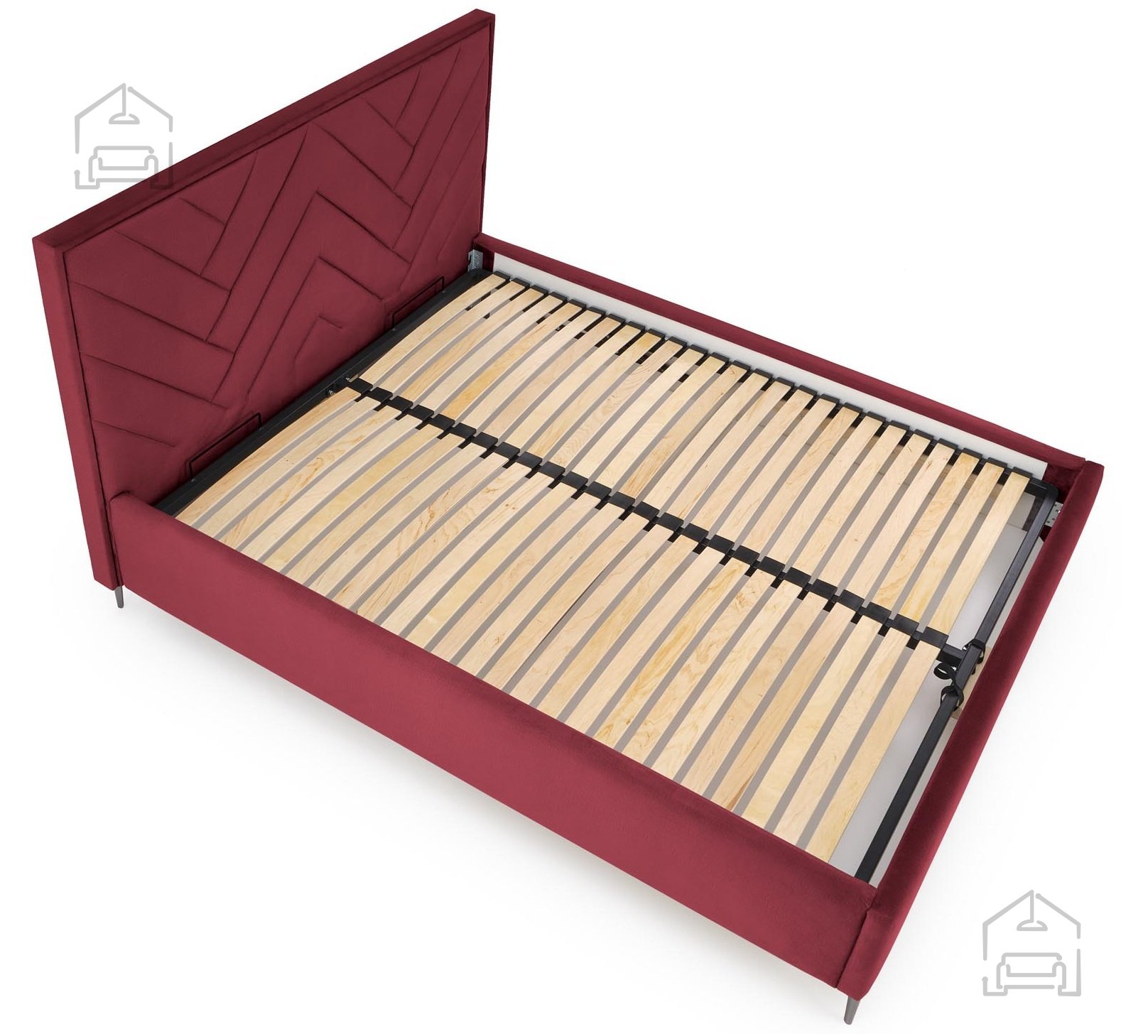 Osnova vzglavja je izdelana iz trpežne iverne plošče, ki zagotavlja stabilnost in dolgo življenjsko dobo. Površina je prevlečena z mehkim žametom, kar omogoča prijeten otip in udobno naslanjanje med branjem ali počivanjem. Bordo odtenek tkanine iz kolekcije Monolith 59 je prepoznaven po svojem rahlem sijaju in bogatem tonu, ki se lepo ujema z nevtralnimi ali kontrastnimi barvami spalničnega pohištva.