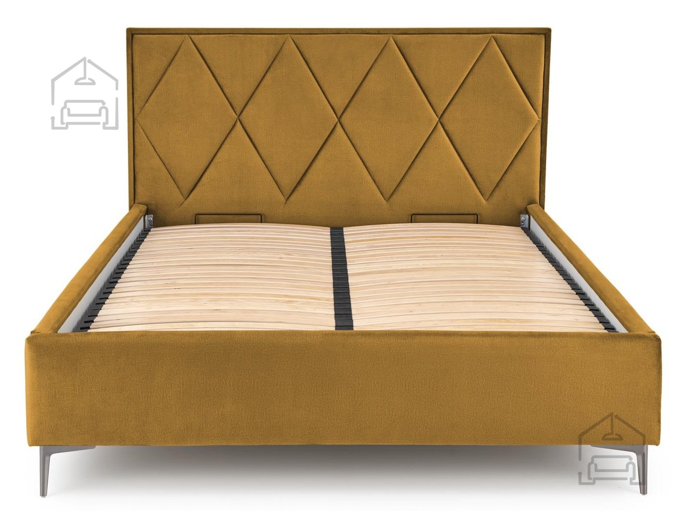 Žametna tkanina in prefinjena barva gorčice: Halmar vzglavje za posteljo Modulo W4.