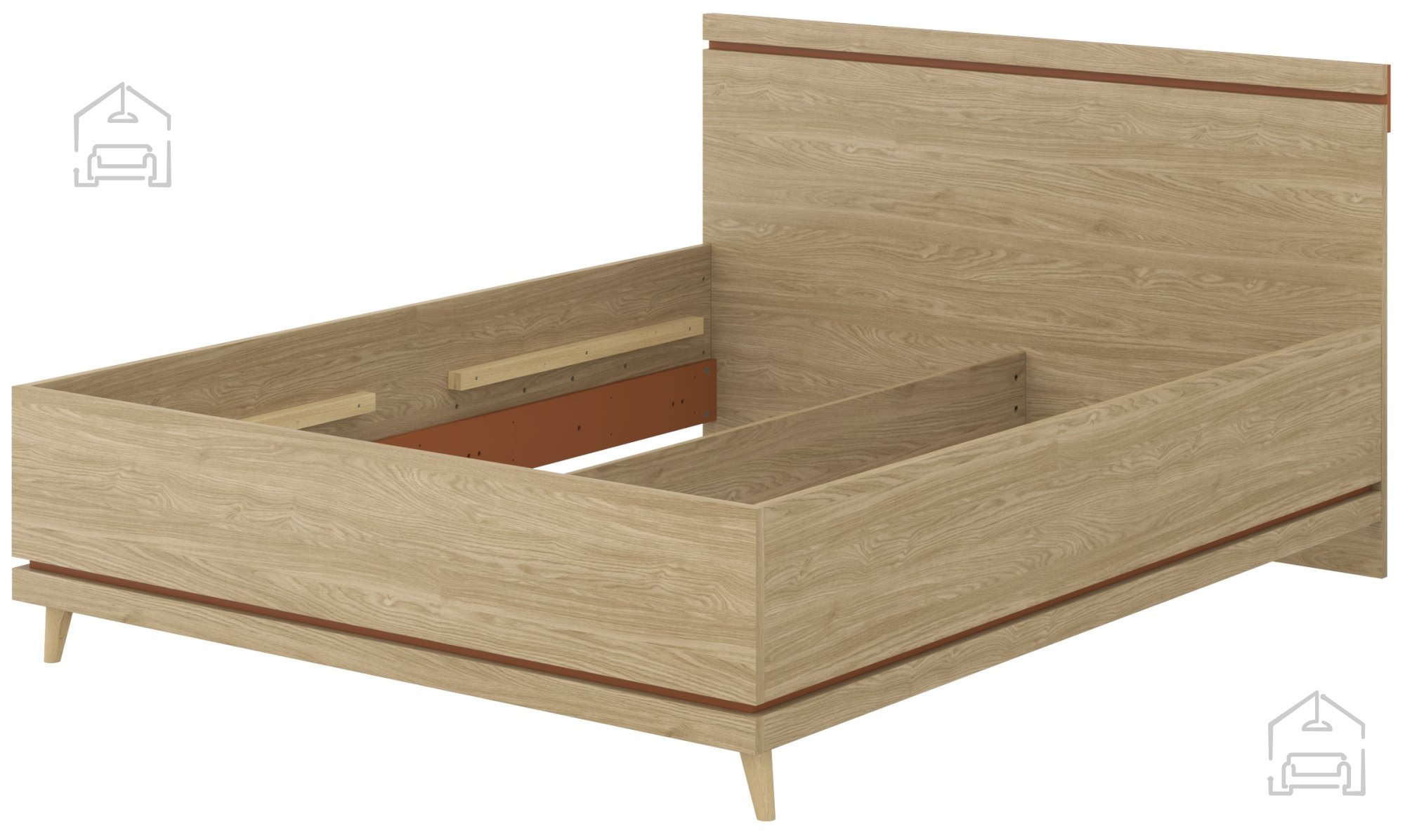 Postelja Scandi navdušuje s svojim pristnim videzom oljenega hrasta, ki v prostor vnese občutek topline in naravne elegance. Kombinacija hrasta in odtenka opeke ustvarja prijeten kontrast, ki doda značaj in individualnost spalnici. Zaradi univerzalne barvne sheme se postelja zlahka ujema z različnimi barvami sten, tekstilom in dodatki – od svetlih tonov do temnejših, bolj drznih kombinacij.