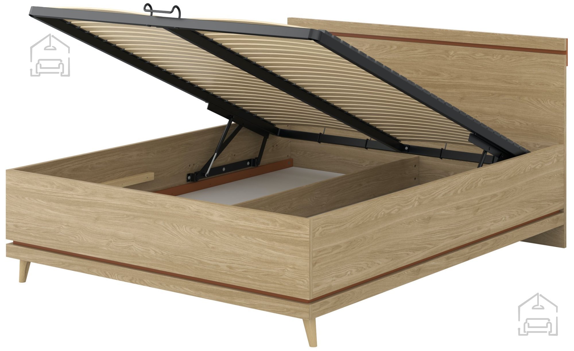 Pod elegantnim ležiščem se skriva praktičen predal za posteljnino, ki vam omogoča optimalno izrabo prostora. Zahvaljujoč dvižnemu mehanizmu z gladkim in tihim delovanjem boste do shranjevalnega prostora dostopali brez napora. Ta rešitev je idealna za manjše spalnice ali za vse, ki cenite urejenost in funkcionalnost.