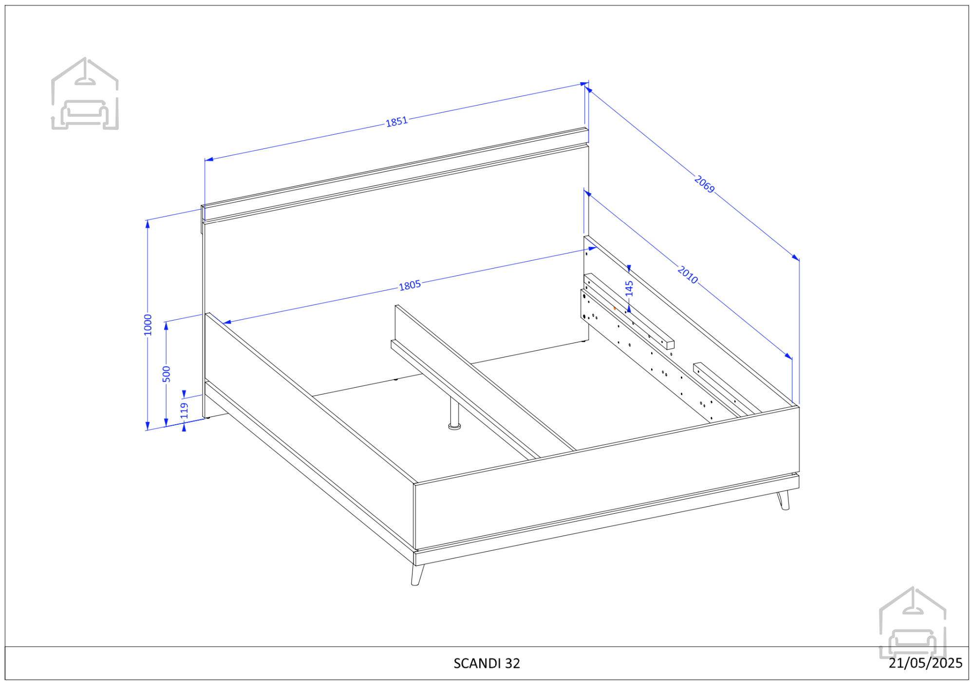 Plastične nogice poskrbijo za stabilnost in enostavno čiščenje pod posteljo, medtem ko celotna konstrukcija zanesljivo podpira kakovostno letveno dno, ki zagotavlja optimalno prezračevanje in podporo vzmetnici. Postelja je zasnovana tako, da se popolnoma prilega dimenzijam 185x207x100 cm in nudi prostor za ležišče velikosti 180x200 cm.