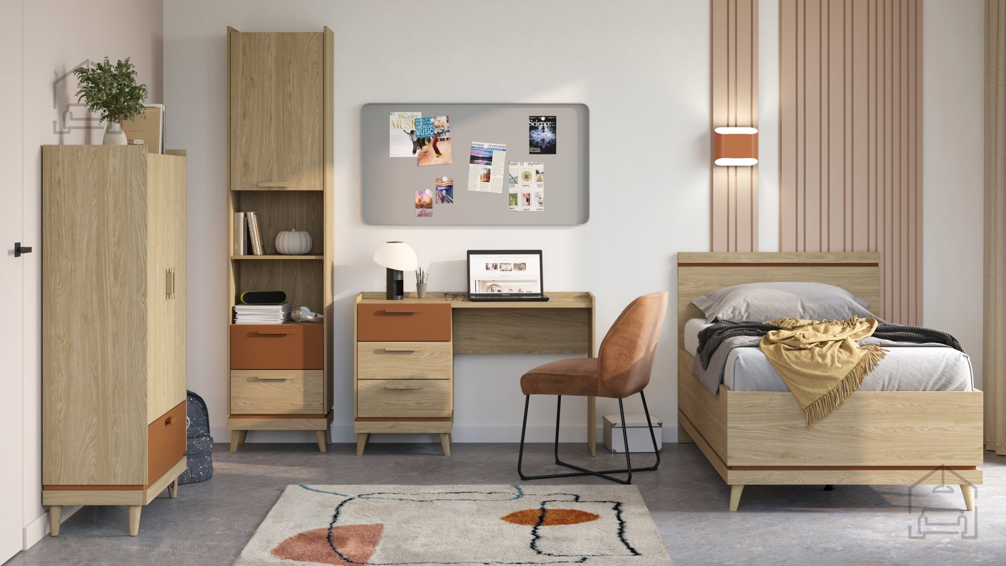 Ko iščete popolno ravnovesje med naravno toplino lesa, sodobnim dizajnom in praktično uporabnostjo, je postelja Scandi z dvižnim mehanizmom odlična izbira. S svojo kombinacijo barv oljenega hrasta in tople opečne nianse prinaša v spalnico občutek domačnosti, hkrati pa ohranja minimalistično estetiko, značilno za skandinavski slog. Ta postelja ni le vizualno privlačna, temveč tudi izjemno funkcionalna – zahvaljujoč dvižnemu mehanizmu omogoča enostaven dostop do prostornega predala za posteljnino, kar je idealna rešitev za vse, ki si želijo več prostora v spalnici.