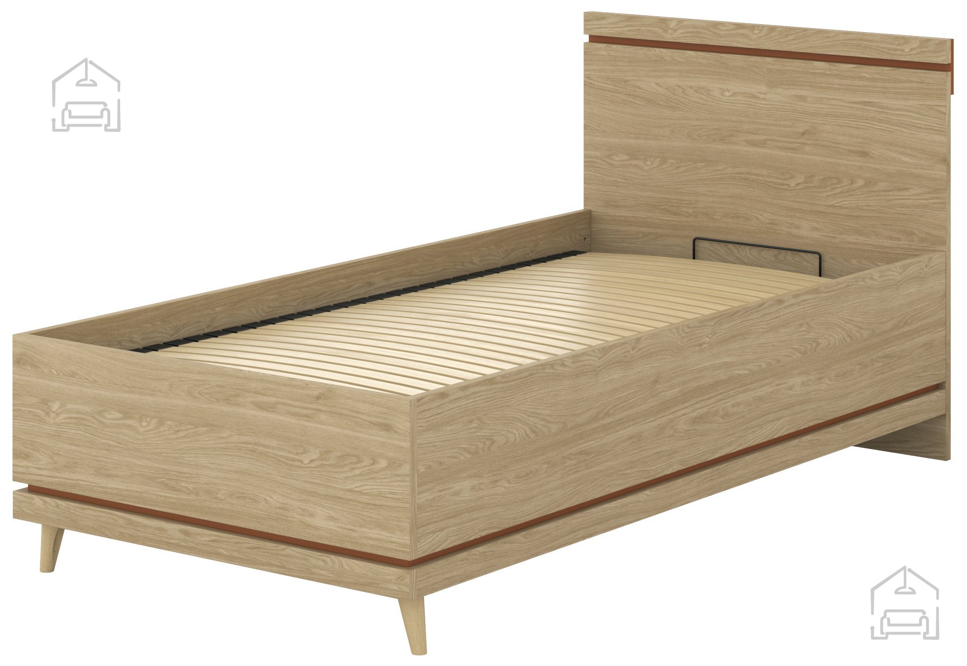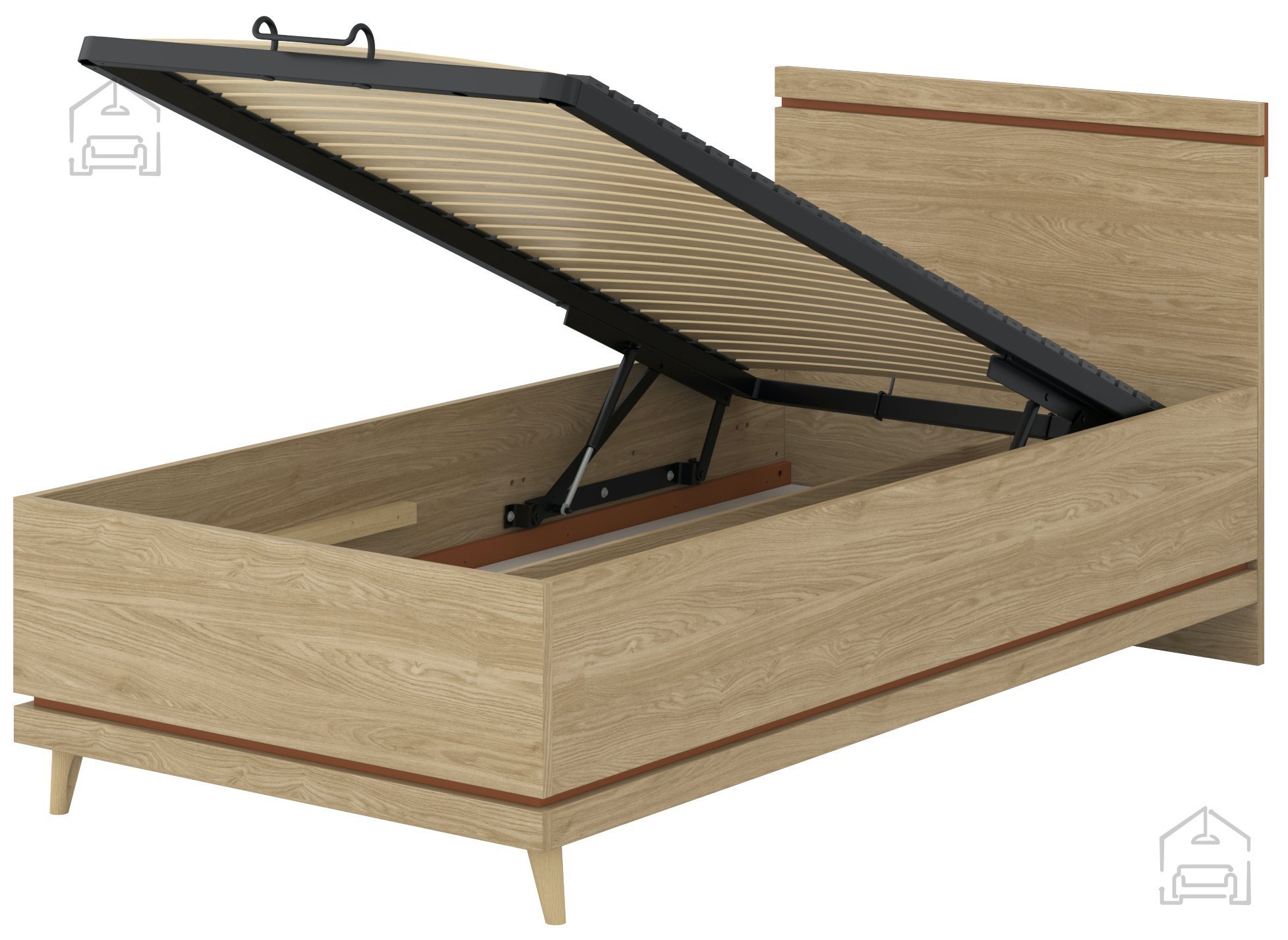 Ko iščete popolno ravnovesje med naravno toplino lesa, sodobnim dizajnom in praktično uporabnostjo, je postelja Scandi z dvižnim mehanizmom odlična izbira. S svojo kombinacijo barv oljenega hrasta in tople opečne nianse prinaša v spalnico občutek domačnosti, hkrati pa ohranja minimalistično estetiko, značilno za skandinavski slog. Ta postelja ni le vizualno privlačna, temveč tudi izjemno funkcionalna – zahvaljujoč dvižnemu mehanizmu omogoča enostaven dostop do prostornega predala za posteljnino, kar je idealna rešitev za vse, ki si želijo več prostora v spalnici.