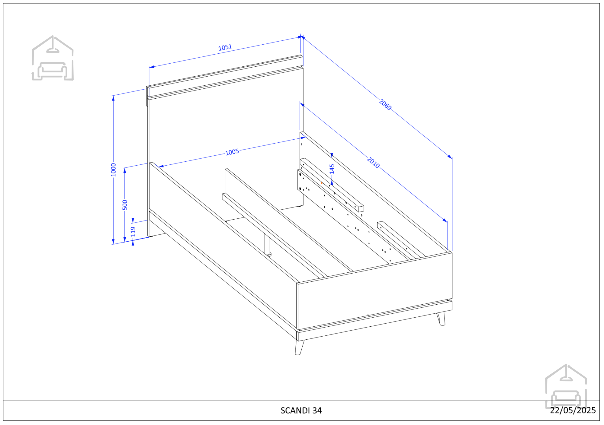 Ena največjih prednosti postelje Scandi je vgrajen dvižni mehanizem, ki omogoča preprost in tih dvig ležišča. S tem pridobite dodaten prostor za shranjevanje posteljnine, sezonskih oblačil ali drugih predmetov, ki jih želite imeti na dosegu roke, a hkrati pospravljene. Ta pametna rešitev prihrani prostor in ohranja spalnico urejeno, kar je še posebej pomembno v manjših stanovanjih. Plastične nogice poskrbijo za stabilnost in zaščito talnih oblog, hkrati pa ohranjajo sodoben videz postelje. Skrbno izbrani materiali in kakovostna izdelava zagotavljajo, da bo postelja dolgo ostala lepa in funkcionalna – brez škripanja, upogibanja ali deformacij.