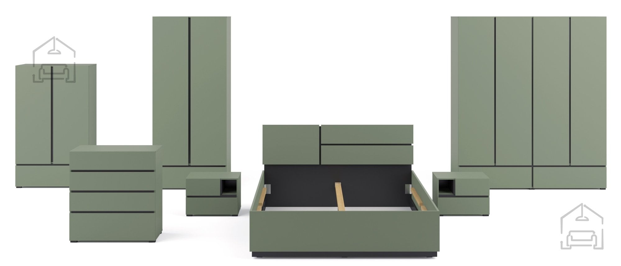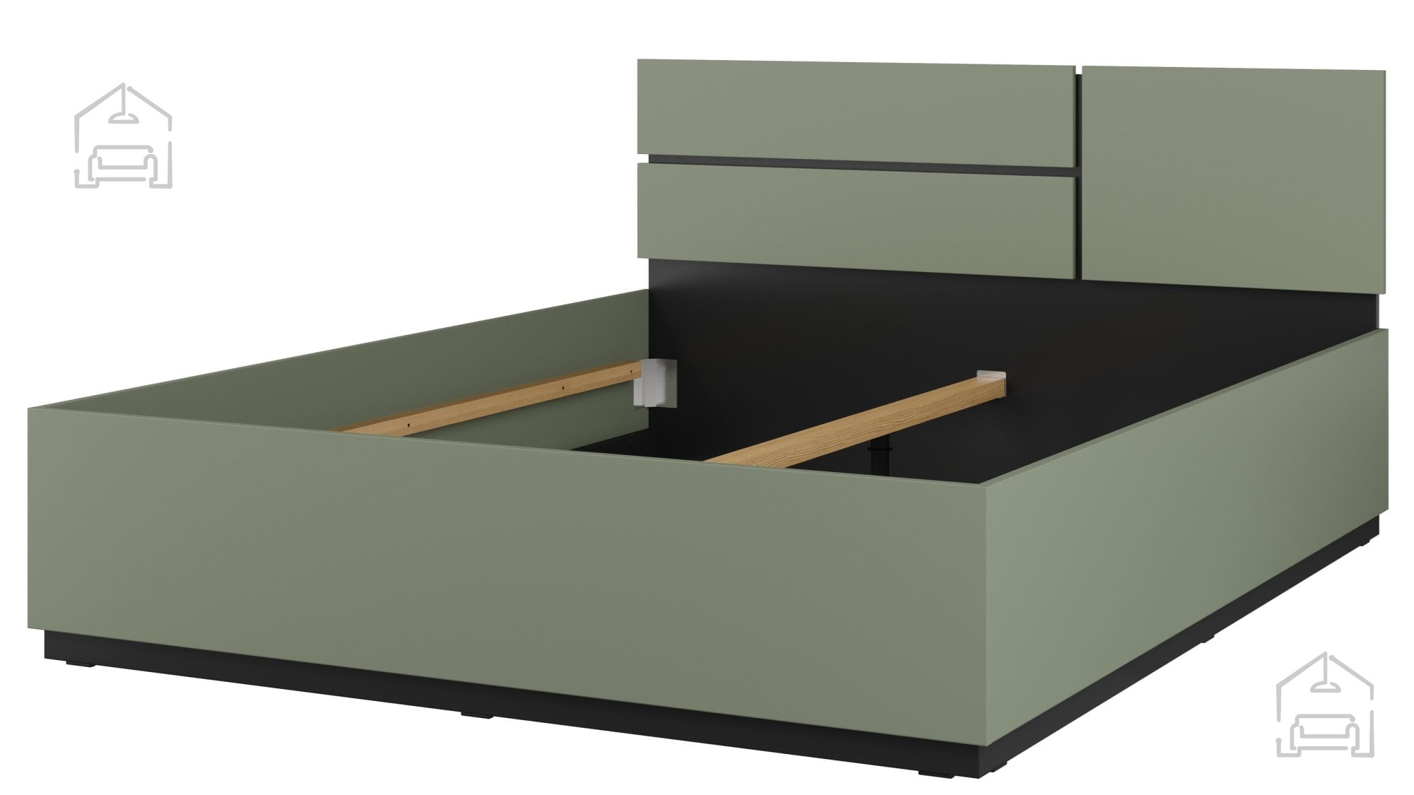 Barvna izvedba zelena z zeleno-črnimi detajli prinaša zanimiv kontrast, ki poudari sodoben značaj postelje. Zelena barva deluje pomirjujoče in ustvarja prijetno atmosfero v spalnici, medtem ko črni poudarki dodajo občutek elegance in prefinjenosti. Takšna kombinacija je idealna za moderno notranjo opremo, kjer prevladuje minimalistična estetika, a hkrati želimo vanjo vnesti nekaj topline in osebnosti.