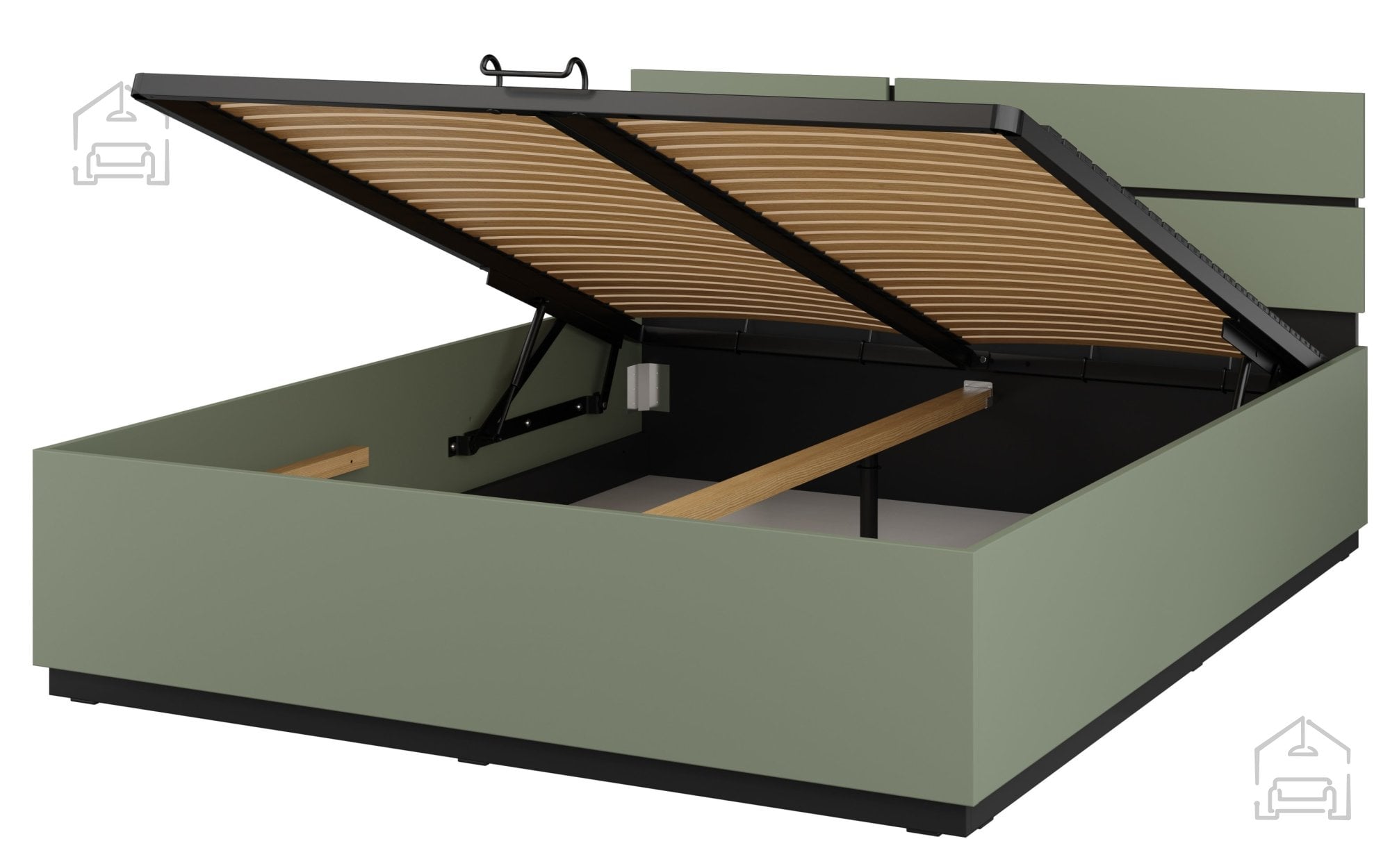Dvižna postelja Cross S znamke Helvetia Meble združuje funkcionalnost, preprostost in estetsko dovršenost, ki so značilni za sodoben slog pohištva. S svojimi dimenzijami 164×205×91 cm je namenjena ležišču velikosti 160×200 cm in tako zagotavlja udobje ter prostornost za vsakodnevno uporabo. Zelena barva z črnimi detajli daje postelji izrazit, a hkrati uravnotežen videz, ki se zlahka poda tako k minimalističnim kot tudi k bolj dinamičnim interierjem.