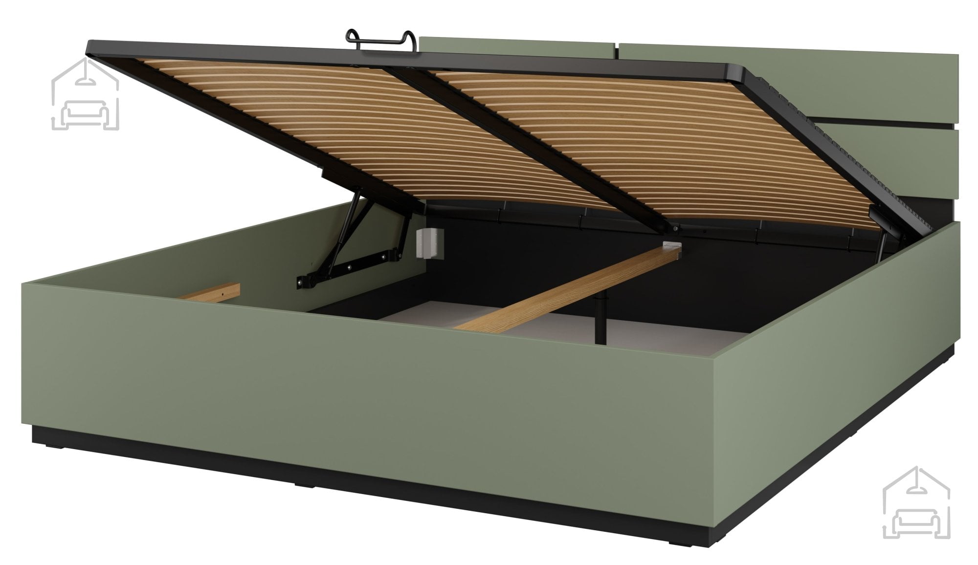 Zelena barva v kombinaciji s črnimi detajli ustvarja sodoben in nekoliko drzen videz, primeren za mladostne ali minimalistične interierje. Površine so gladke, enostavne za čiščenje in odporne proti praskam, zato postelja dolgo ohranja prvotni videz. Zaradi preprostih linij se lepo ujema z različnimi barvnimi kombinacijami sten in tekstila, kar olajša načrtovanje celotne spalnice.