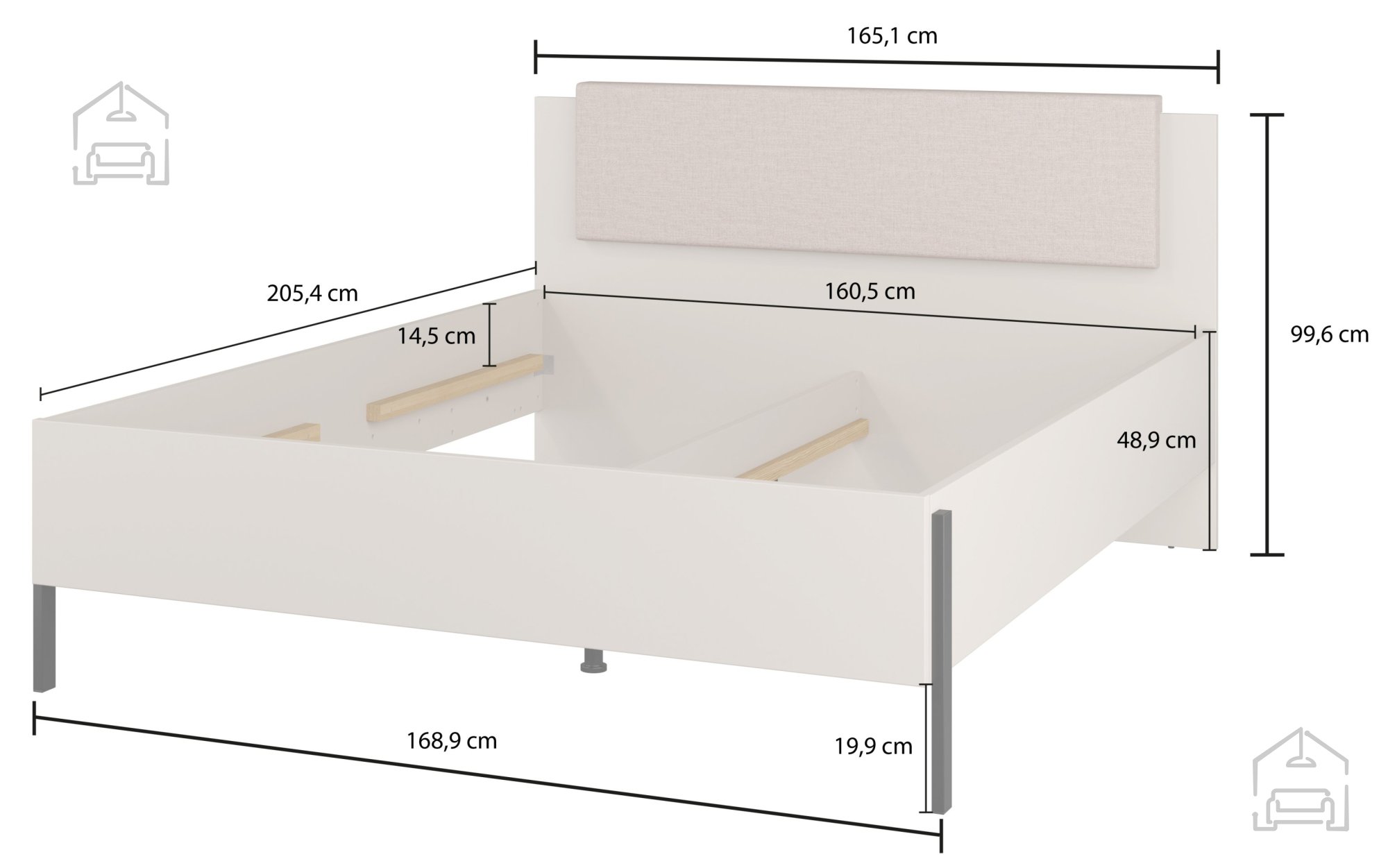 Okvir postelje je izdelan iz trpežne pohištvene plošče debeline 15 mm, kar ji zagotavlja stabilnost in dolgo življenjsko dobo. Površina v topli barvi kašmir deluje umirjeno in elegantno, hkrati pa se lepo ujema z različnimi barvnimi kombinacijami tekstila ali sten. Postelja tako ni le funkcionalen kos pohištva, temveč tudi estetski poudarek spalnice.