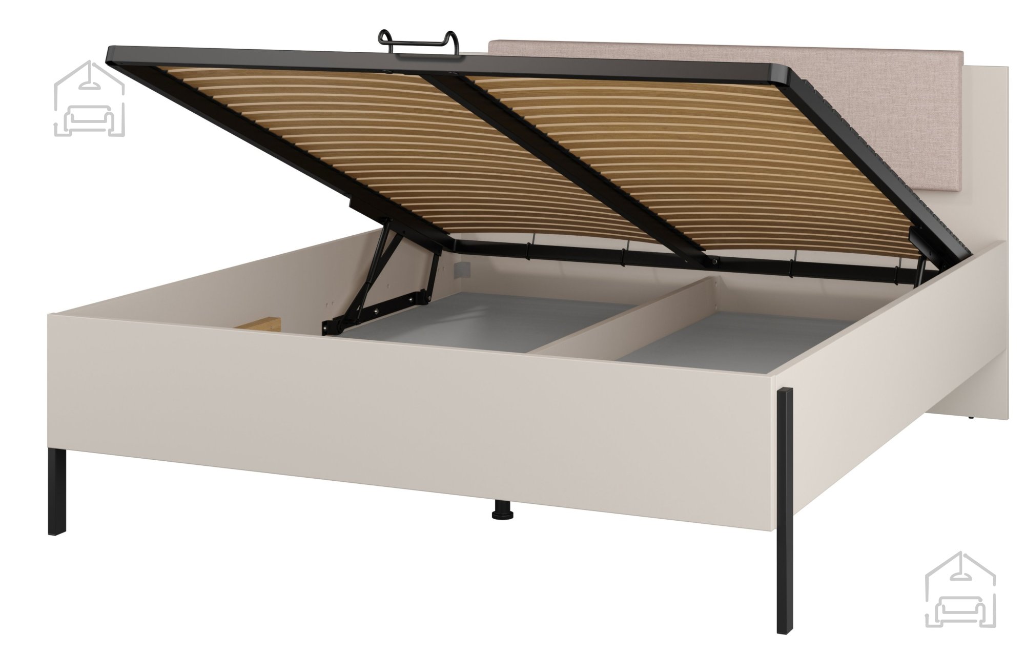 Dvižna postelja Jukon S je sodoben kos pohištva, ustvarjen za tiste, ki želijo združiti udobje, funkcionalnost in estetsko dovršenost spalnice. Njena nežna barva kašmir prinaša občutek topline in miru, medtem ko kovinske črne noge dodajo subtilen kontrast in pridih sodobne elegance. Postelja je izdelana iz kakovostne pohištvene plošče debeline 15 mm, kar zagotavlja stabilnost in dolgo življenjsko dobo tudi pri vsakodnevni uporabi.