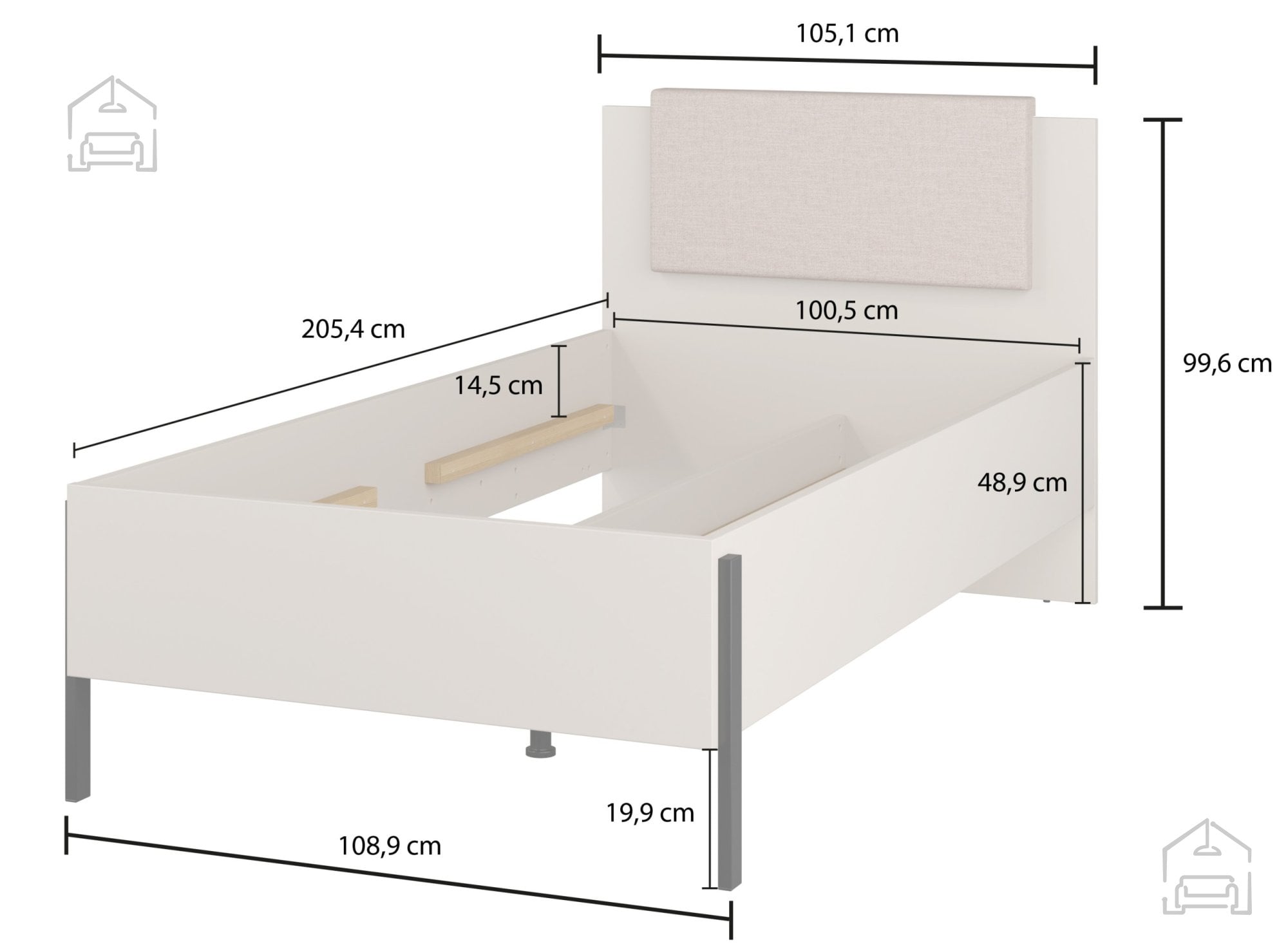 Zunanje mere 105×205×100 cm omogočajo, da se postelja Jukon S enostavno umesti v mladinske sobe, manjše spalnice ali gostinske prostore. Nevtralni odtenek kašmirja se lepo ujema z lesenimi, belimi ali kontrastno temnimi površinami. Kovinske noge dajejo postelji rahlo lebdeč videz in omogočajo lažje čiščenje spodnjega dela. Dvižni mehanizem pa naredi posteljo praktično izbiro za vse, ki želijo maksimalno izkoristiti prostor brez kompromisov pri udobju.