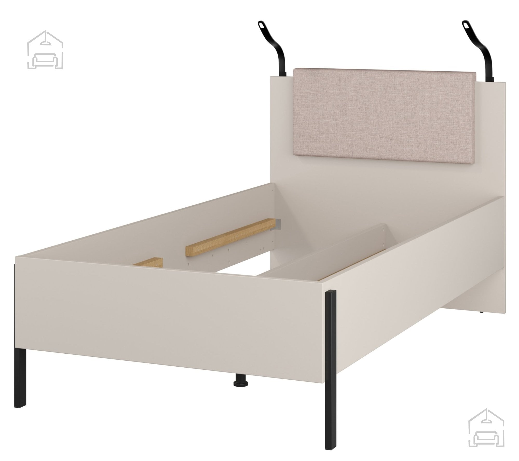 Postelja Jukon S je izdelana iz pohištvene plošče debeline 15 mm, ki zagotavlja stabilnost in dolgo življenjsko dobo. Površina v odtenku kašmir prinaša toplino in nevtralnost, zato se ta model lepo ujema z različnimi notranjimi slogi – od minimalističnih do klasičnih. Okvir iz iverala je trden in hkrati estetsko dovršen, robovi so natančno zaključeni, kar poudari kakovost izvedbe. Dopolnjujejo ga kovinske noge v barvi črne mat, dimenzij 460×40×20 mm, ki dodajo sodoben videz in zagotavljajo stabilno oporo konstrukciji.
