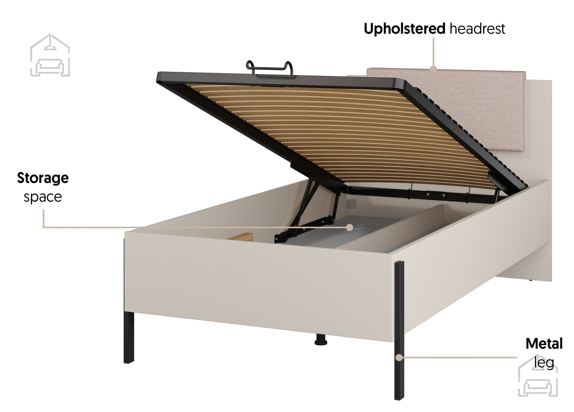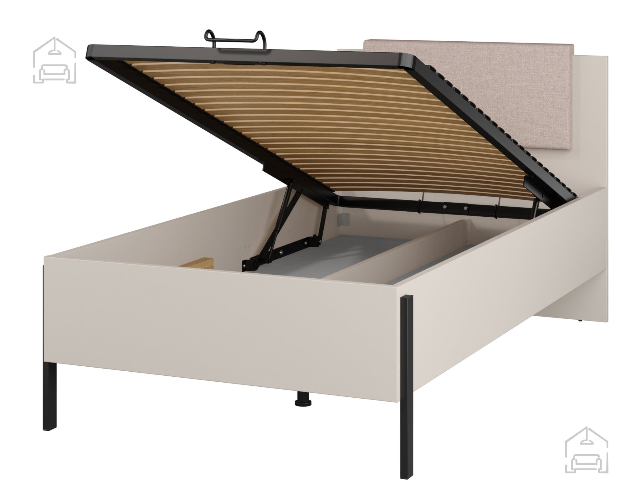 Dvižni mehanizem in topla barva kašmirja: Helvetia meble dvižna postelja Jukon S – 100x200 cm.
